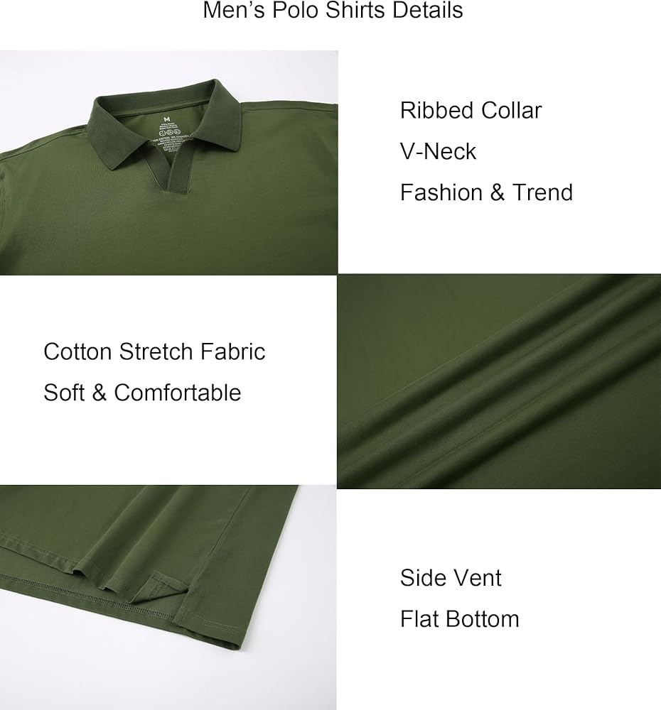 Versatile Style: With a classic V-neck design, our polo shirts effortlessly blend style and versatility. They can be dressed up with chinos for a smart-casual look or paired with jeans for a more laid-back vibe. From the office to the weekend, these shirts have you covered.
