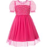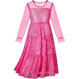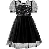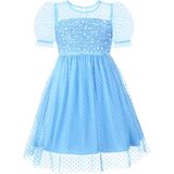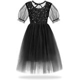 This dazzling dress features a playful sheer fabric that dances in the air, twinkling with every movement and inviting your little one to twirl and play in a dreamlike world. Whether it's a birthday party, family gathering, school performance, wedding, or festive holiday celebration, she will shine in this enchanting outfit. Suitable for spring, summer, fall, and winter, this dress is designed to make every moment magical and memorable.