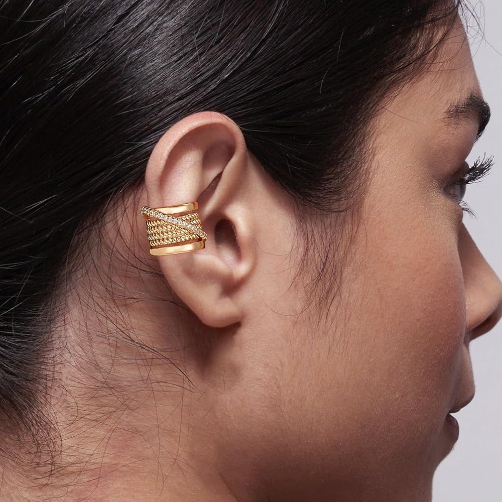 Single Ear Cuff Earrings: This shimmering single ear clip features a braided edge design. The row of varying-sized simulated diamonds in the center makes the ear clip even more dazzling under the sunlight.You can layer these huggies along your ear cartilage. No piercing required; easy to wear and remove.