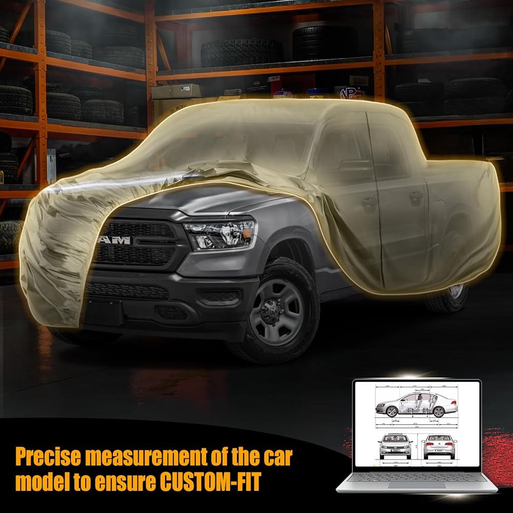 Waterproof Truck Covers Replace for Ford F150 / Dodge Ram 1500 CrewCab 5.5 ft, Multilayer Heavy Duty with Cotton Liner Car Cover with Zipper Door, Windproof Bands for Snow Rain Dust Protection