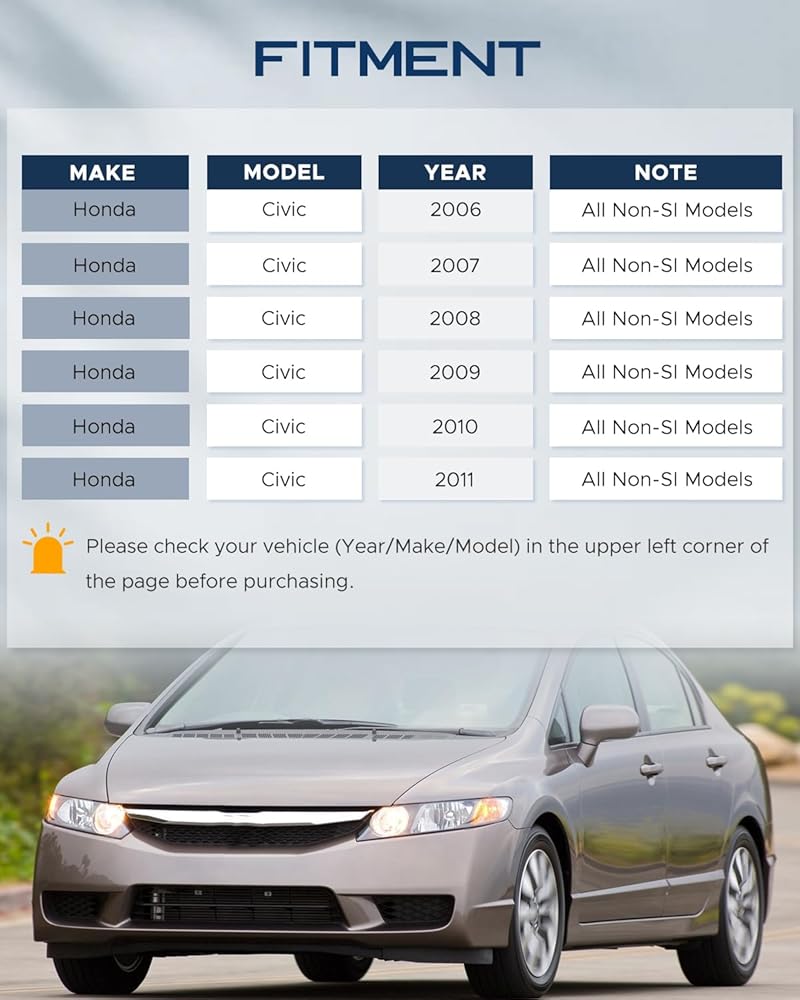 【Vehicle Fitment】Compatible with 2006 2007 2008 2009 2010 2011 Civic All Non-SI models.