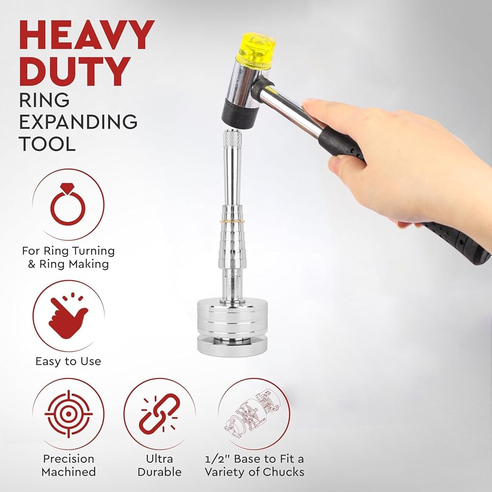 【SCOPE OF USE】Great for jewelry repair shops or personal use.The Heavy-duty base expanding ring mandrel fits ring sizes 6 to 14 This set.It has diameter 2.36" base to fit a variety of chucks.