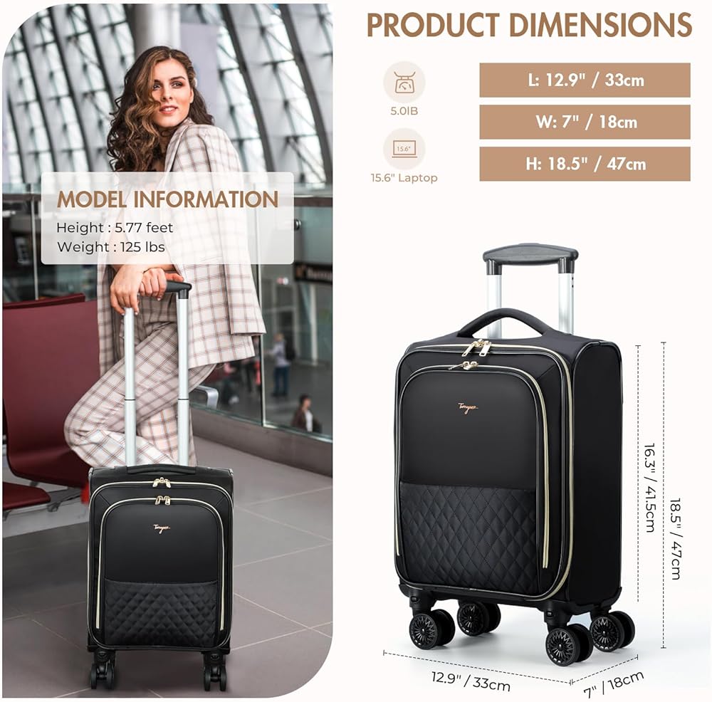 Spacious with Laptop Protection - Offers ample space for 3-5 day trips, with a padded compartment that fits a 15.6-inch laptop. Internal mesh pocket and straps help keep clothing and other items organized. The carry-on luggage allows you to pack more, fitting 8 T-shirts, 5 pants, 2 coats, 1 pair of shoes, and other travel essentials.