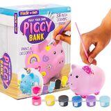 Get ready to paint, play, and save with the adorable Made By Me Paint Your Own Piggy Bank! This kit includes 1 pre-made ceramic piggy bank measuring 3.3 x 3.3 x 3.3 inches. But this piggy bank is more than just a place to stash coins and treasures — it's a canvas for little artists and crafters to unleash their imagination! Just grab the 6-color acrylic paint strip and the included paintbrush and start designing. Need some inspiration? Check out the project guide for fun design and pattern ideas to spark your creativity — mix and match different colors to create custom hues and shades or personalize it with your name; the creative possibilities are endless! This playful piggy bank offers a fantastic opportunity to learn about money and saving, making financial literacy an absolute blast! Whether you're looking for paintable ceramics, a kids money bank, kids banks for real money, or just a fun arts and crafts idea, this set brings the perfect blend of fun and function. Great for anyone age 8 and up!