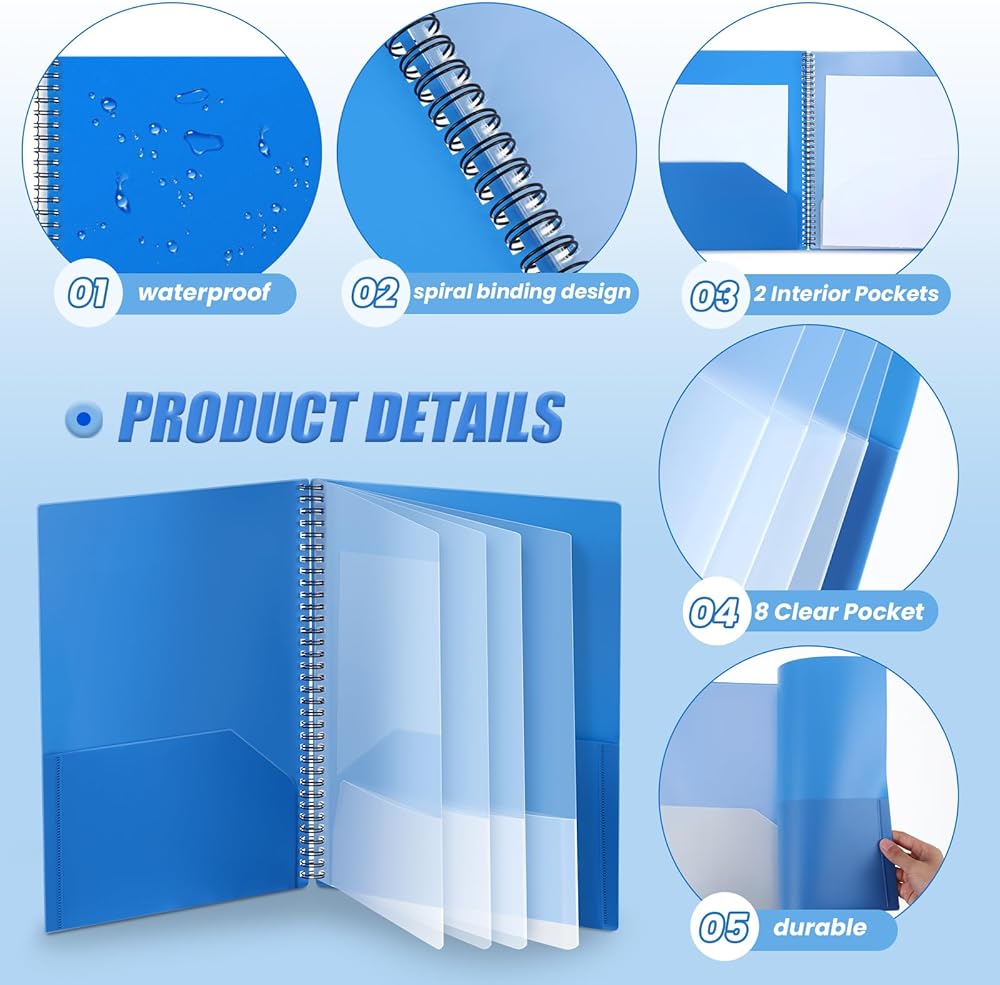 The spiral folder organizer with pockets is ideal for dividing school subjects, work proposals, or presentations to keep your documents organized and flat for a long period.