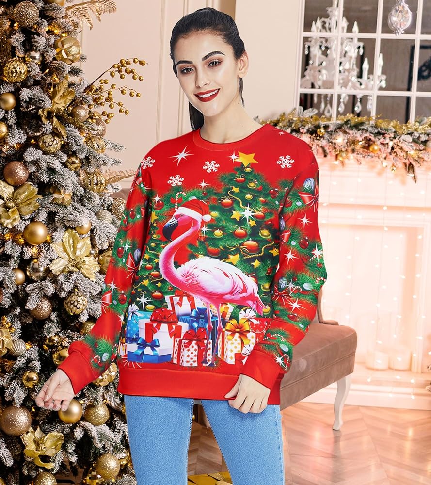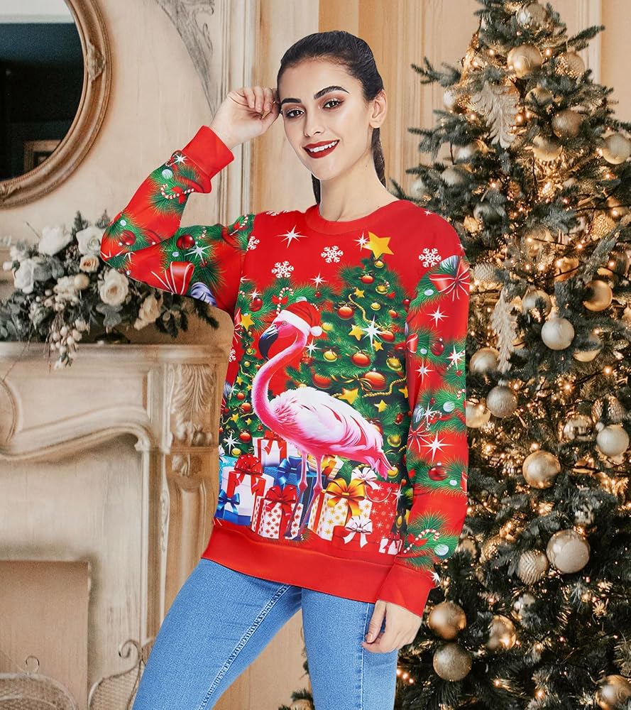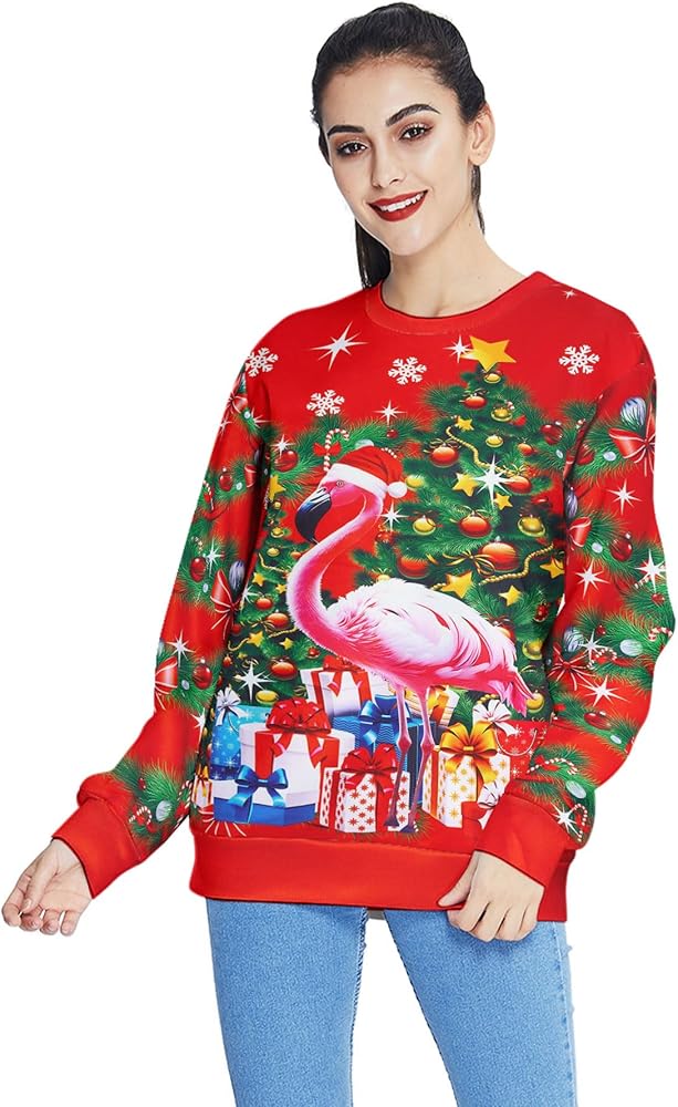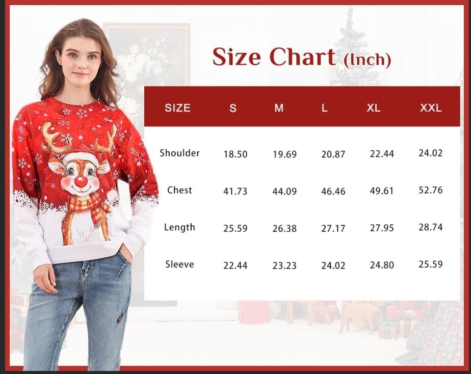 Features of Ugly Christmas Sweatshirts: long sleeve, ribbed cuffs and hem, crewneck, funny and cute Christmas theme print graphic.wrinkle free and breathable fabric, comfy to your touch, very comfy fit wear.