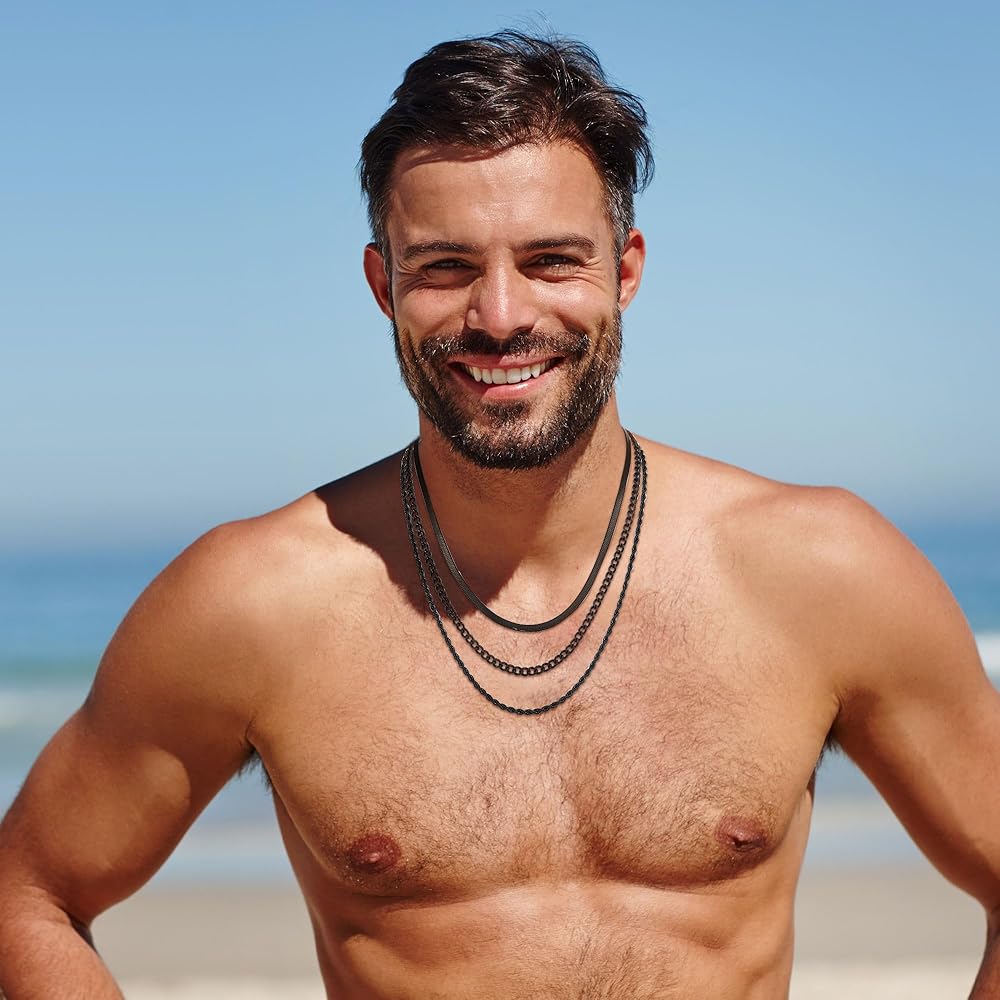【Necklace for Men】The men's necklaces are designed with the idea that they can be worn in many forms. We have 2 necklace sets, each with three chains of the same length. You can wear one necklace alone, a combination of two necklaces, or three necklaces. You can choose the right size for you and your favorite color to use to match the pendant you have, in short, to compose the unique style you want.