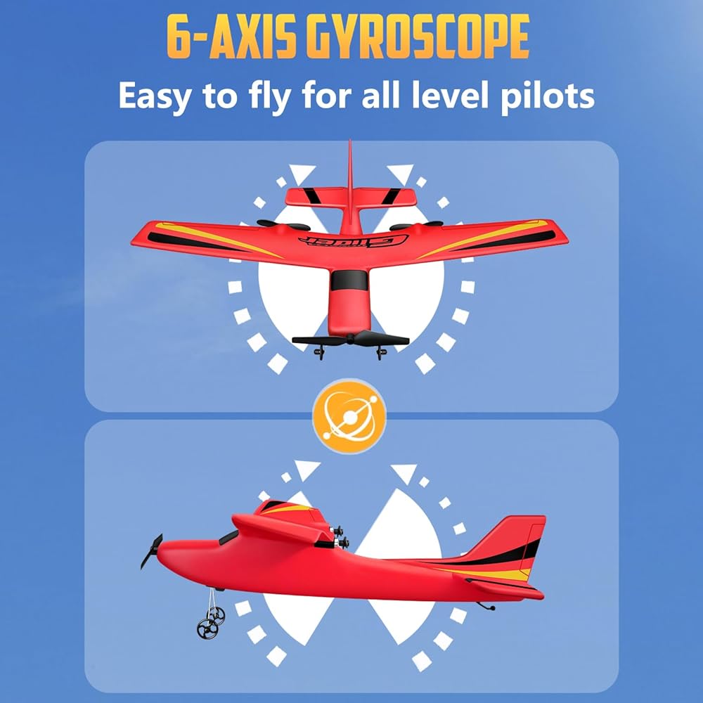 𝐑𝐞𝐦𝐨𝐭𝐞 𝐃𝐢𝐬𝐭𝐚𝐧𝐜𝐞 ≥ 𝟐𝟎𝟎𝐦 - This 2.4 GHz Radio control system can reach a remote control distance of 200m. And 2 or more planes can fly together without mutual confusion.