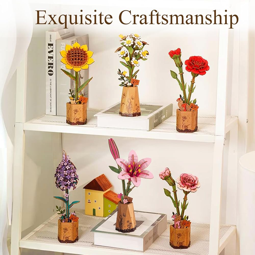 [Versatile Home Décor Accent] - Enhance your living space with the timeless charm of wooden flowers building set. Display them individually in the included cardboard base or arrange them in your favorite vase for a stunning centerpiece. Add a touch of elegance to any room with these exquisite floral creations.