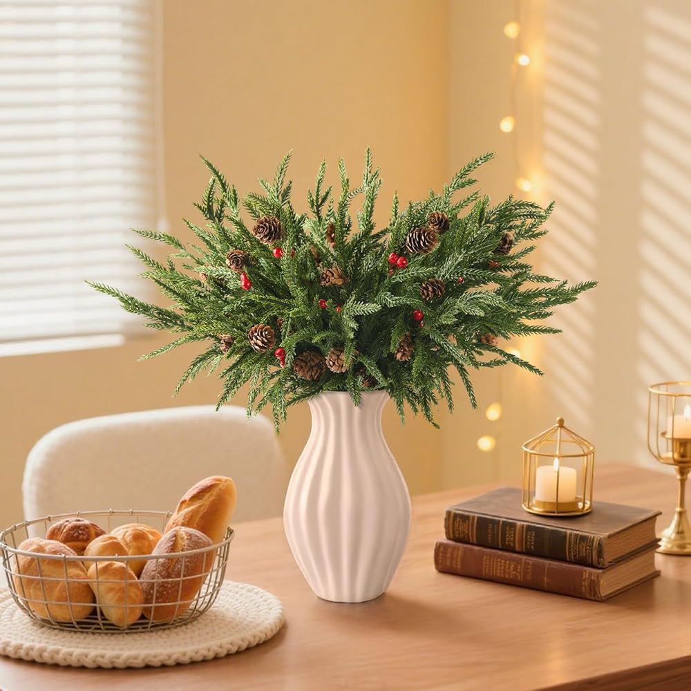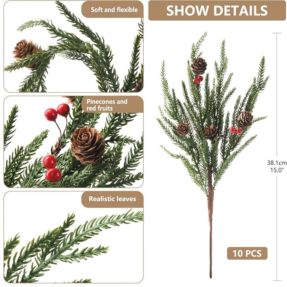 Realistic Design :Our artificial pine branch mimics the lifelike Norfolk pine look and true touch,that look vivid and delicate,like real plants,Great choice for winter decoration on Christmas,winter,holiday and festival seasons.