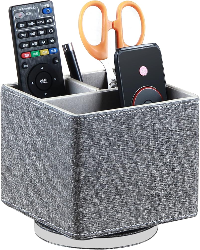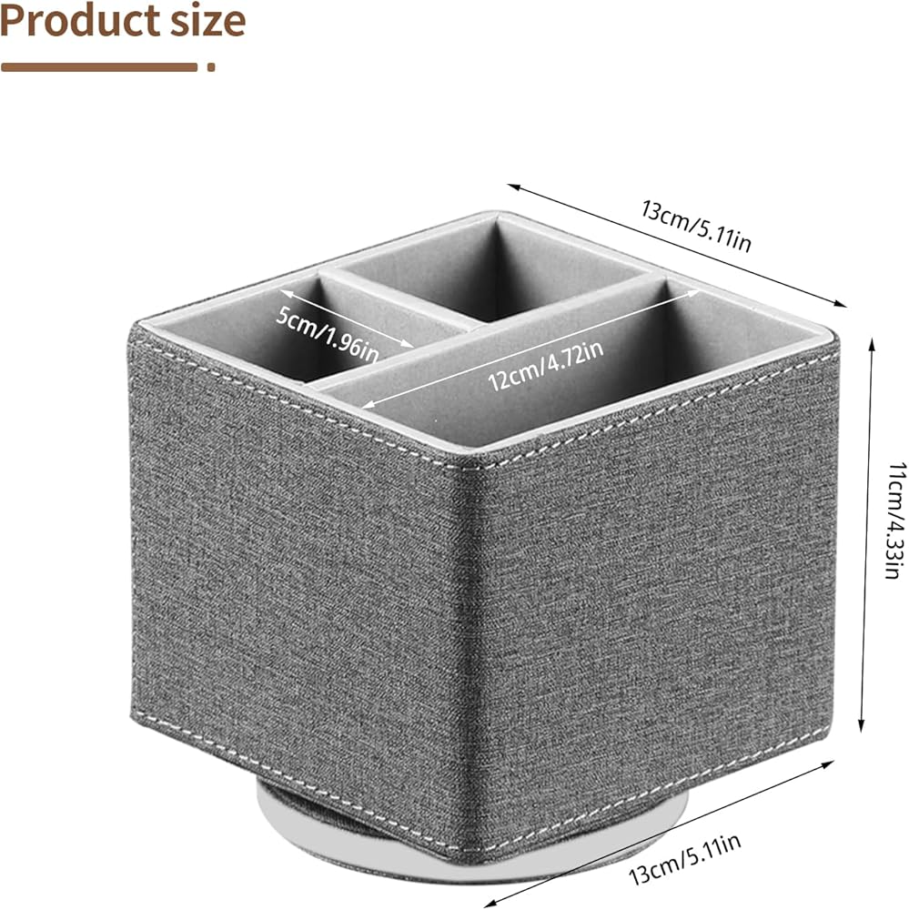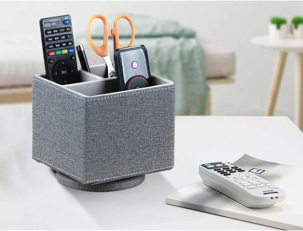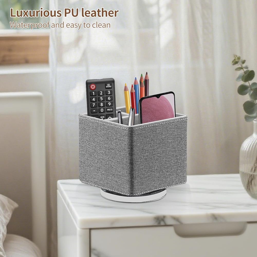 360 DEGREES ROTATABLE REMOTE CONTROL HOLDER: Better details, premium pu leather with delicate stitching, improved swivel base for smoother 360° rotating and more durable, allows easy access to stuff from any direction, room decor aesthetic for your home and office desktop, keep your office and home looks more neat and stylish.