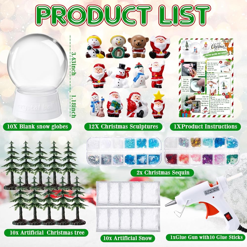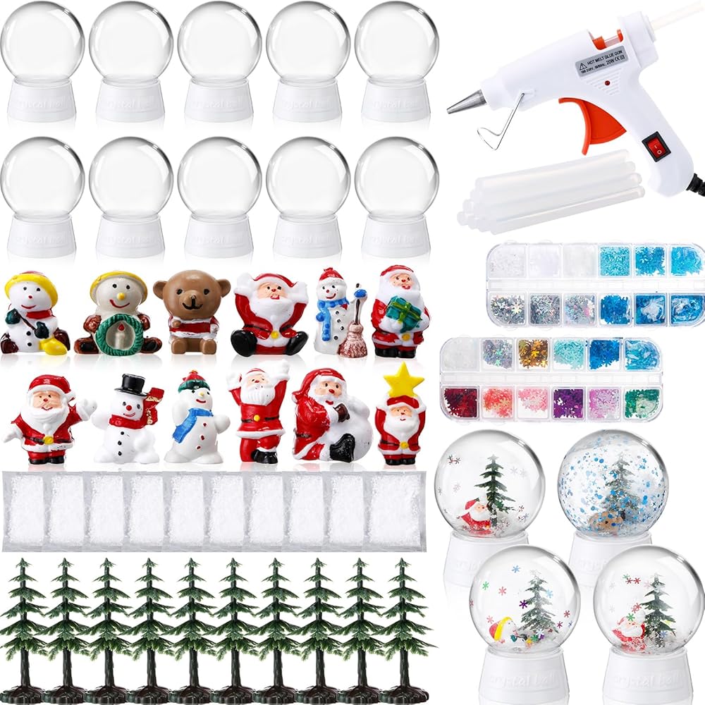Package Information: you will get 10 DIY snow globes, glue gun with 10 pieces of glue sticks, 12 resin Christmas ornaments, 10 Christmas trees, 10 packs of fake snow, 2 boxes of snow glitter, totally 55 pieces; Sufficient quantity will meet your using needs, and you can share them with your family