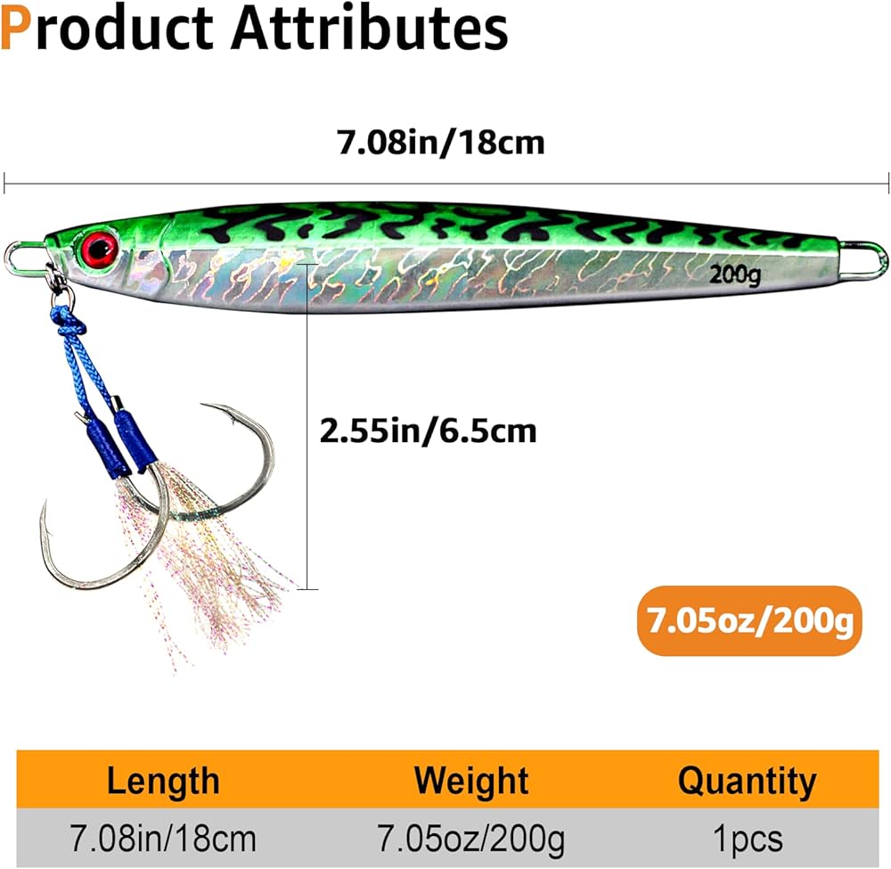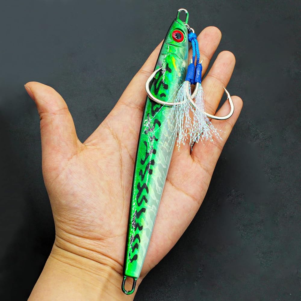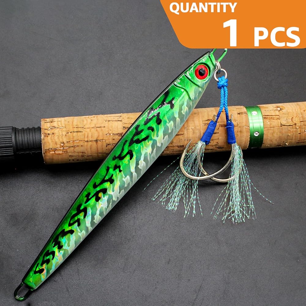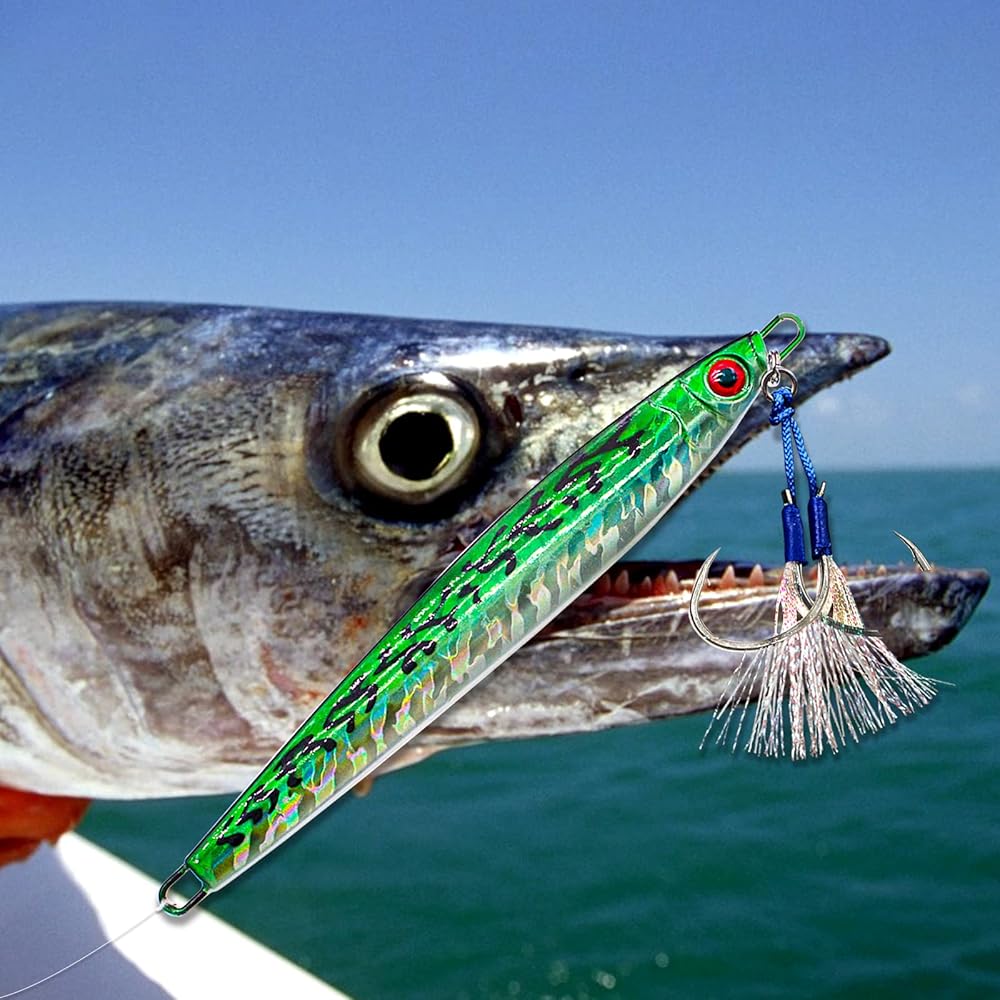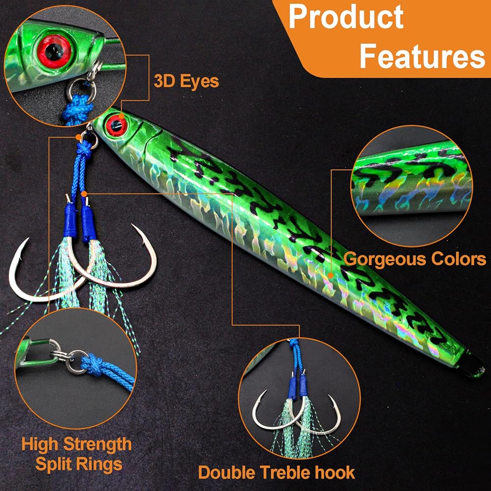 [Target Species] These fishing jigs are suitable for freshwater and saltwater fishing. Brilliant for a variety of fish species, such as tuna, grouper, bluefin, yellowfin, salmon, sailfish, stripe bass, snapper, kingfish, and more.