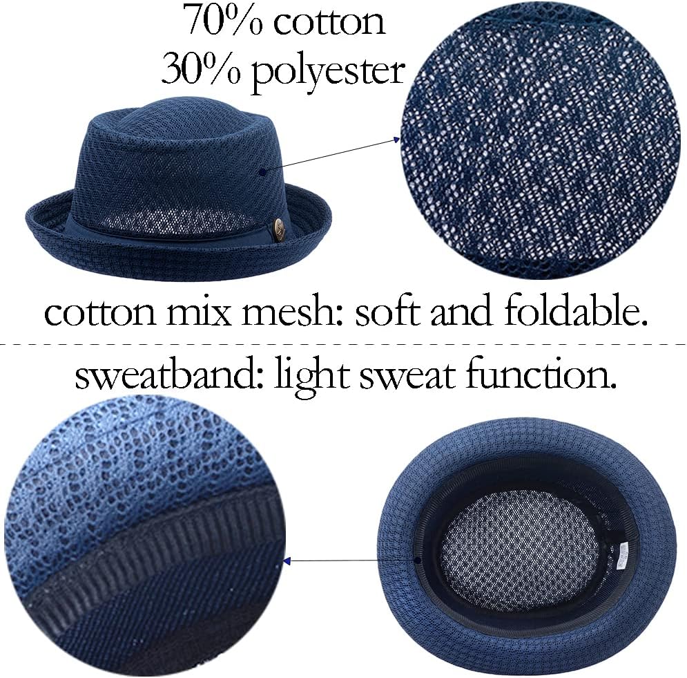 Material: The Mesh Straw Fedora Caps are make of 70% cotton and 30% polyester. mesh material, cooling and soft. It's easy to fold.
