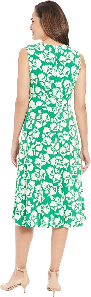 Discover the elegant charm of the London Times Kirby dress. This sleeveless A-line silhouette features a beautiful floral pattern and a jewel neckline for a timeless look.