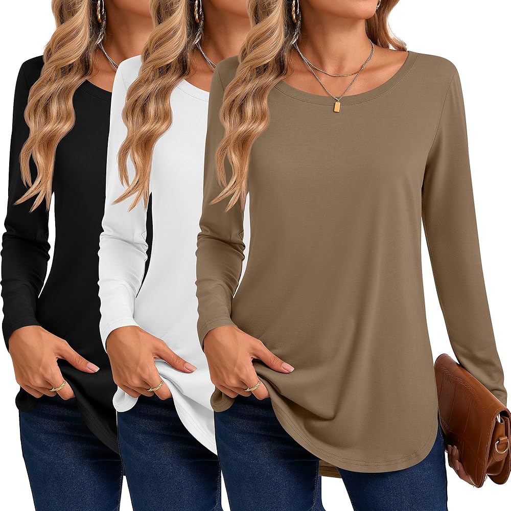 Comfortable Material: the women's long sleeve top is made of 90% polyester and 10% spandex, soft fabric, but wrinkle-resistant, breathable and stretchy; These shirts are very well made with all the seams lined up and even, there is no twisting of the fabric