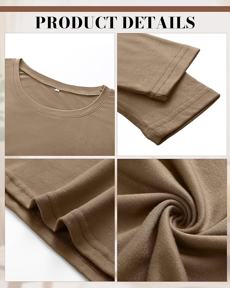 Loose Style: you will love women's crew neck t-shirt loose fit and length, the curved hem just covers the hips, adding a sense of design and matching with leggings, the fabric is a nice thickness, bra color will not show through