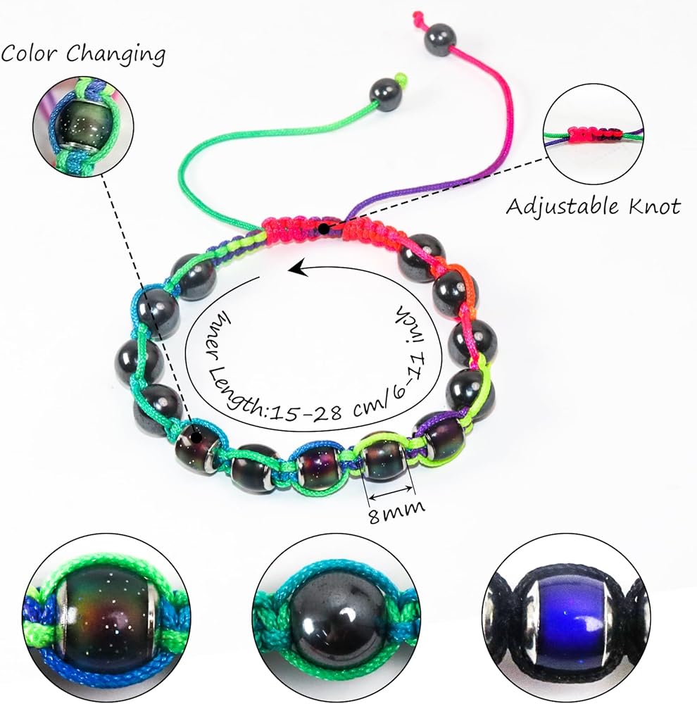 【Thermochromic & Adjustable】these dazzling bead bracelet is cable to change some magical color based on your body temperature, and it can fit mostly people's wrist by adjust the adjustable knot