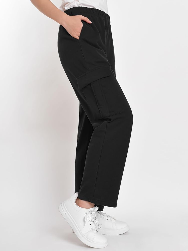 - Cargo pants feature an elastic waistband for quick and easy wear
