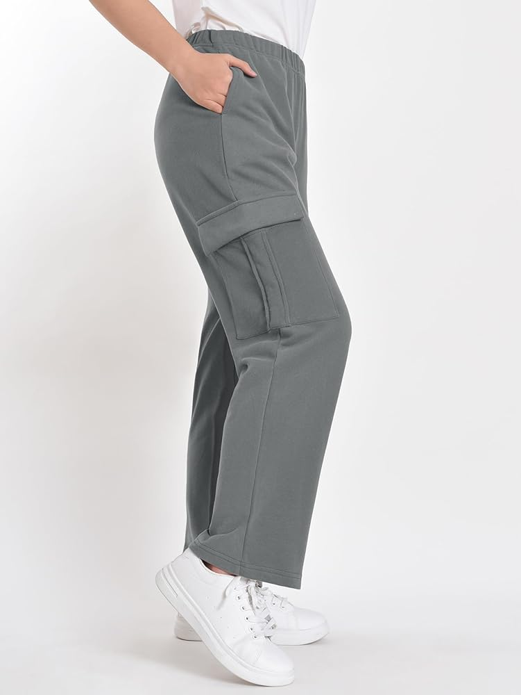 Latuza Women's Petite Cotton Lounge Pants High Waisted Cargo Sweatpants