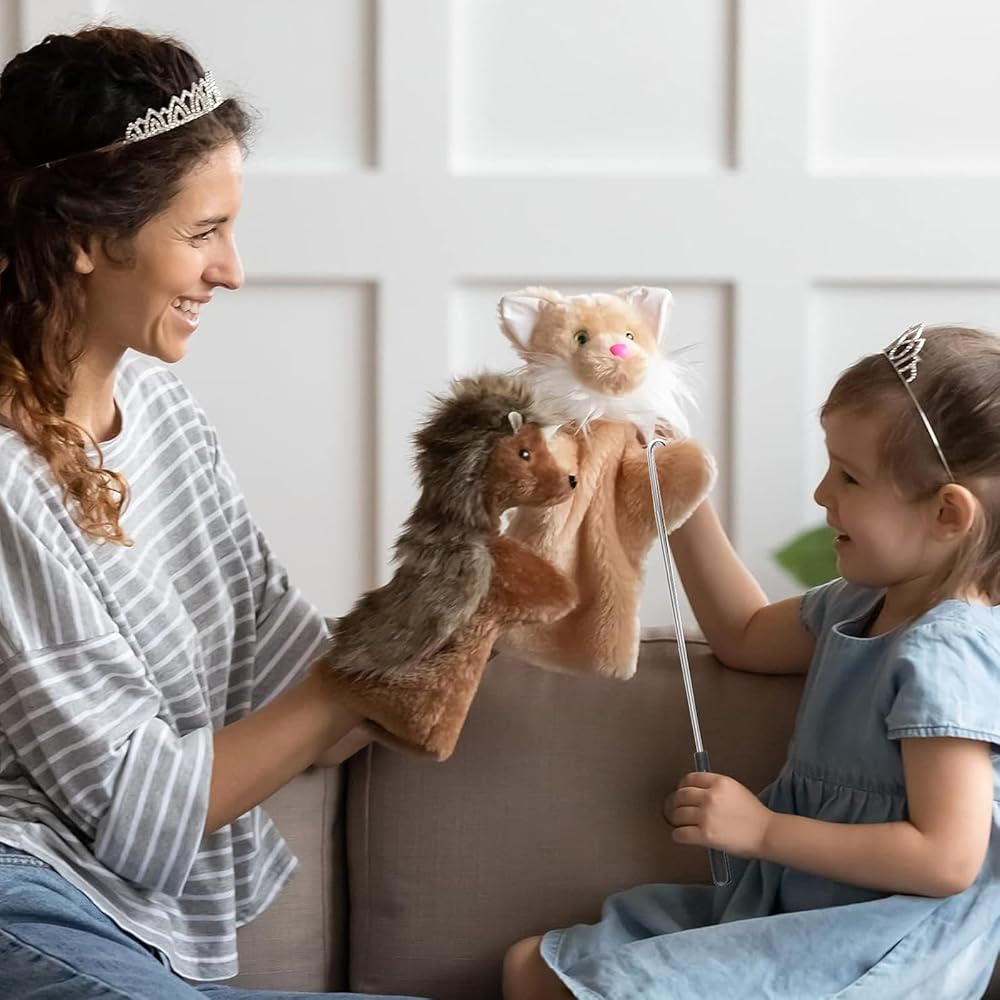 Easy to Use: you can use one arm control rod to manipulate the puppet's facial expressions, and the other to manipulate gesture; Whimsically designed puppets inspire animated play; Playing puppet with these arm rods is a nice way to promote hand-eye coordination and imagination