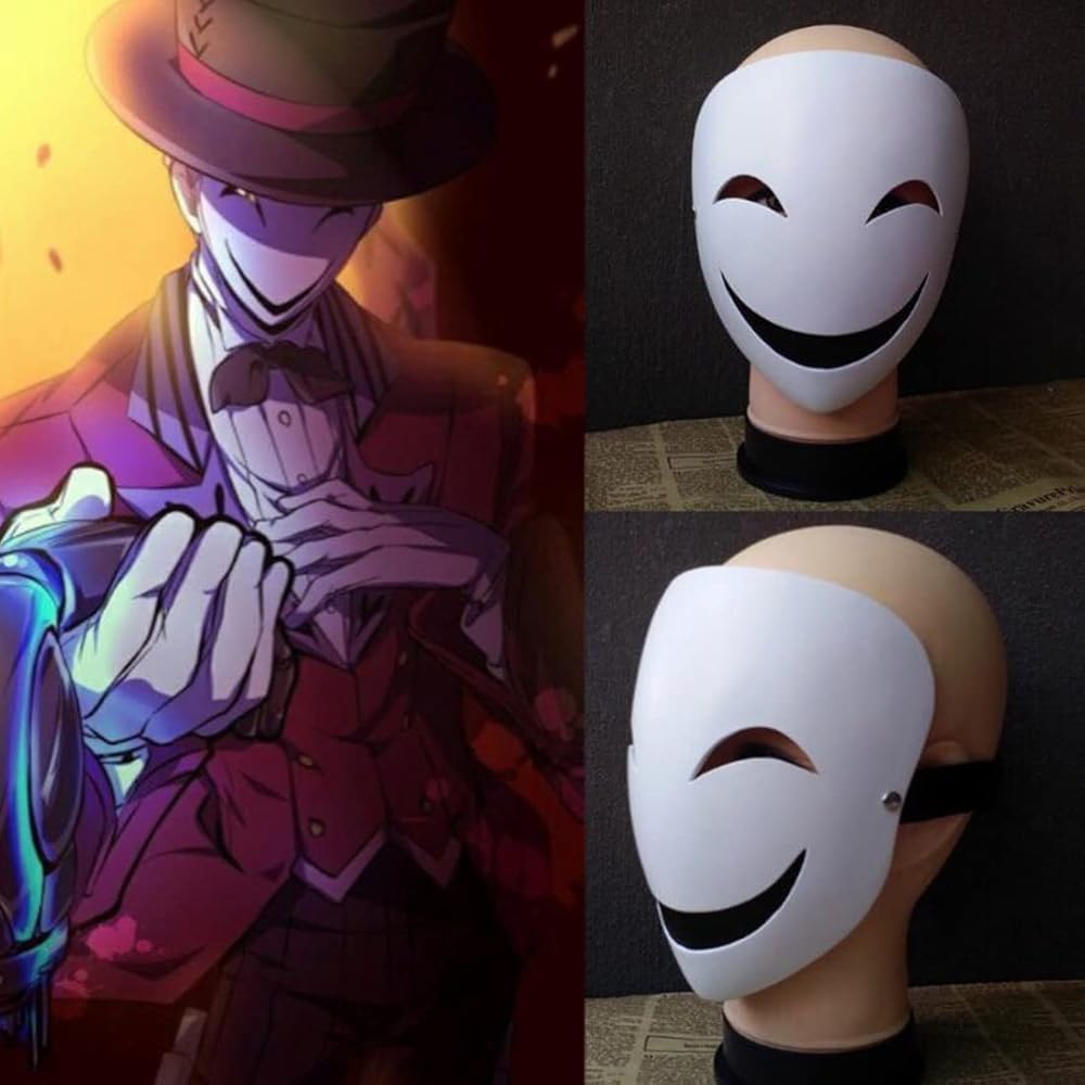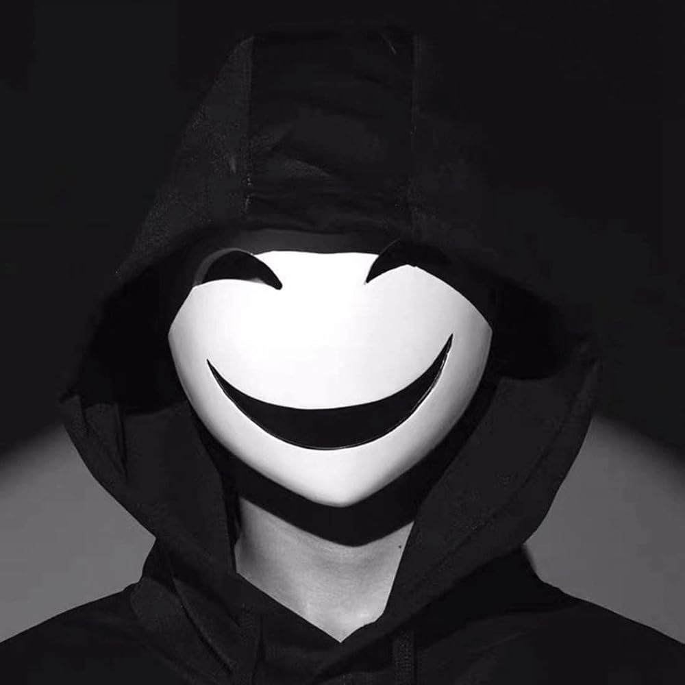 High-Rise Invasion Sniper Mask Yuka Makoto Maid Cosplay, Sniper Mask Tenkuu Shinpan Mask White Smile Resin Mask for Halloween Costume Cosplay Props