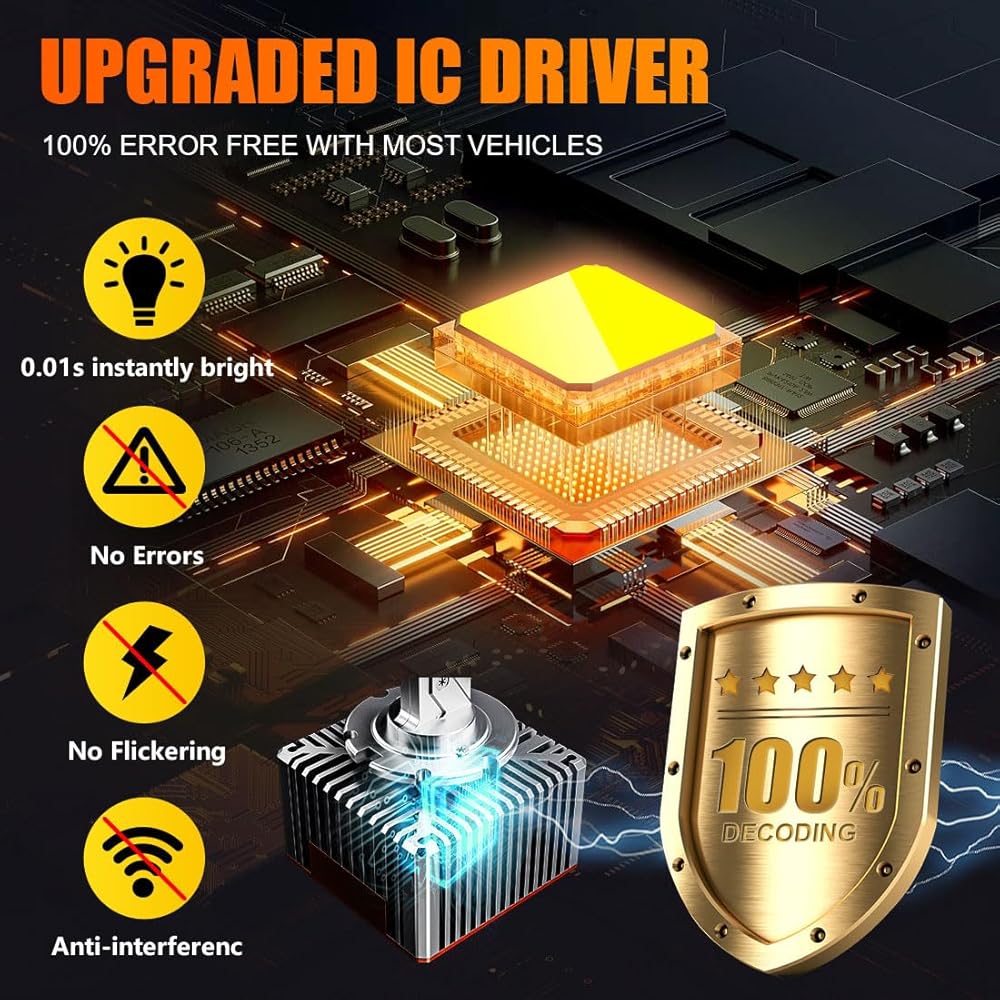 【99% Error-Free, Outstanding Performance】 Upgraded D3S LED Light Bulbs feature a built-in intelligent IC driver and are compatible with 99% of vehicle computer systems without errors or flickers, with no electromagnetic interference.