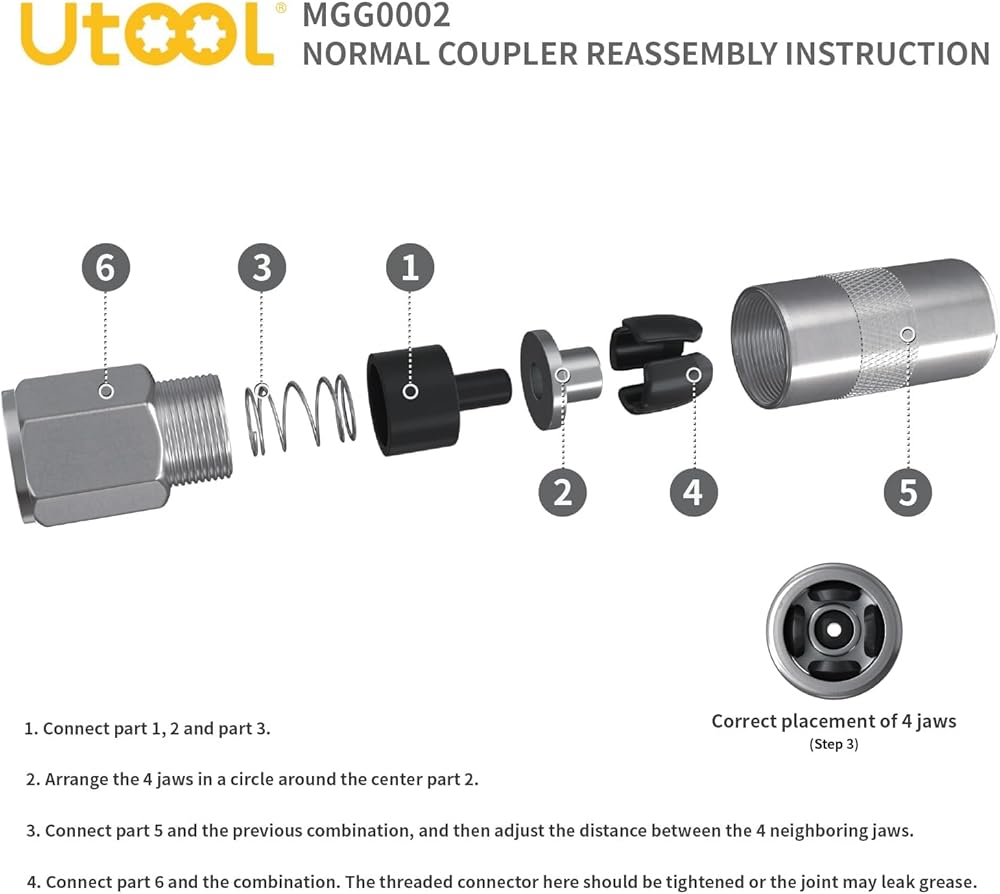 UTOOL Grease Gun Accessory Kit | 4-Jaw Rebuildable Coupler 3PCS, 1/8 NPT Threads, Max Working Pressure 8000 PSI