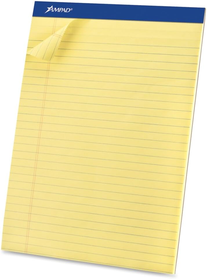 Ampad Perforated Pad, Size 8-1/2 x 11-3/4, Canary Yellow Paper, Legal Ruling, 50 Sheets Per Pad (20-260), 50 Count (Pack of 12)