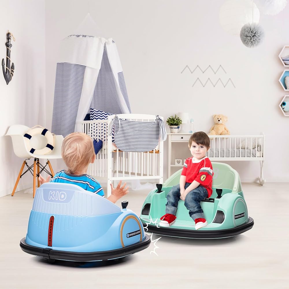 Enhanced Performance: The kids bumper car is powered by a long-lasting 12V rechargeable battery, ensuring extended playtime. Equipped with 25W*2 powerful motors, children can drive comfortably on various terrains, experiencing premium performance with every journey.