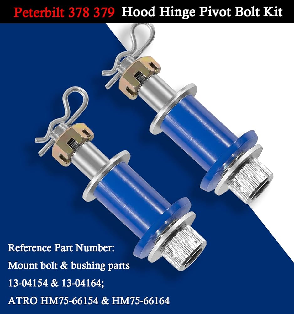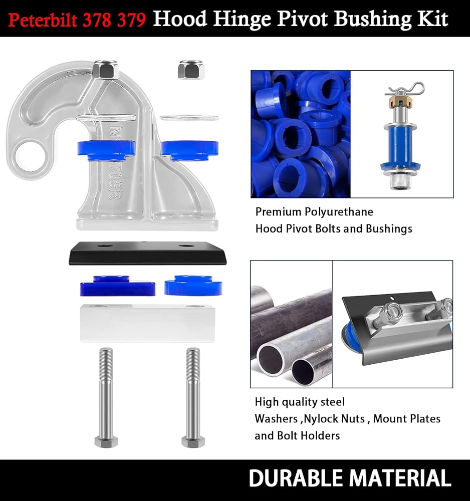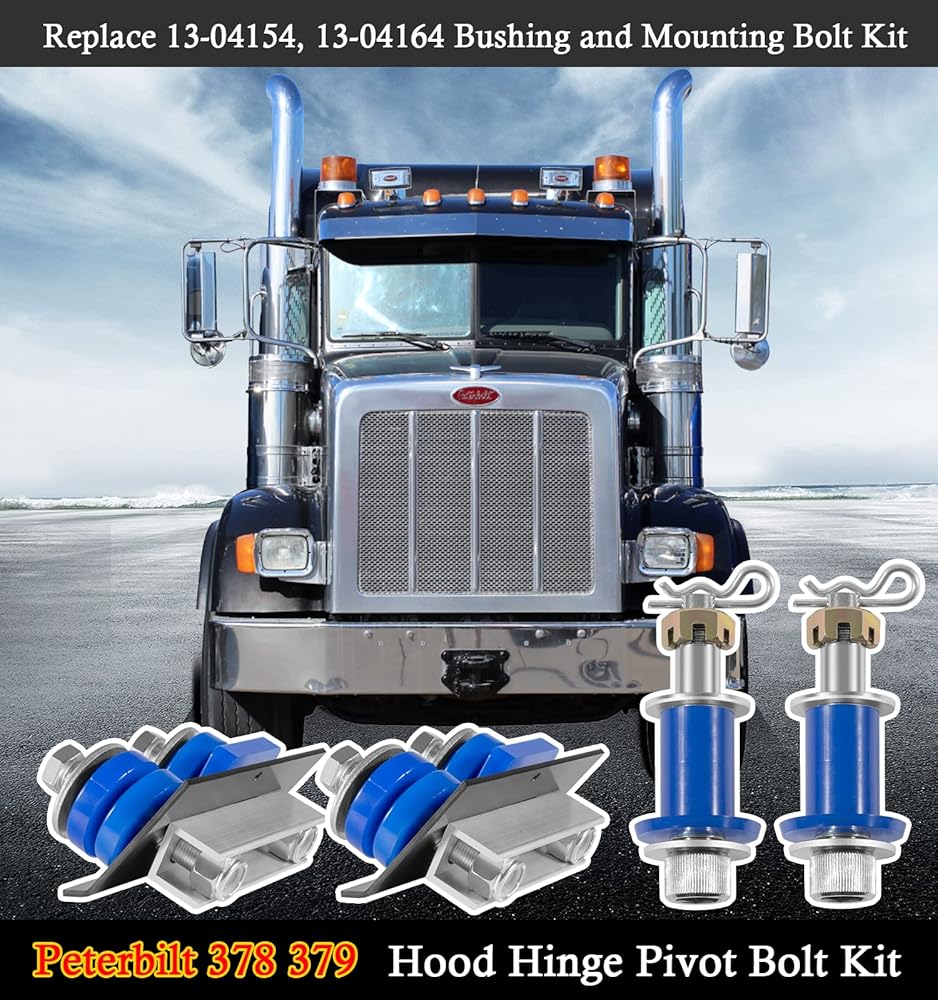 【Fitment】Compatible with Peterbilt 379 378 377 Lower Hood Secure Accessories: engine hood hinge pivot bolt bushing parts, Sold as Pair & Assembled with Hardware. Hood mount bushings replacement Kit.