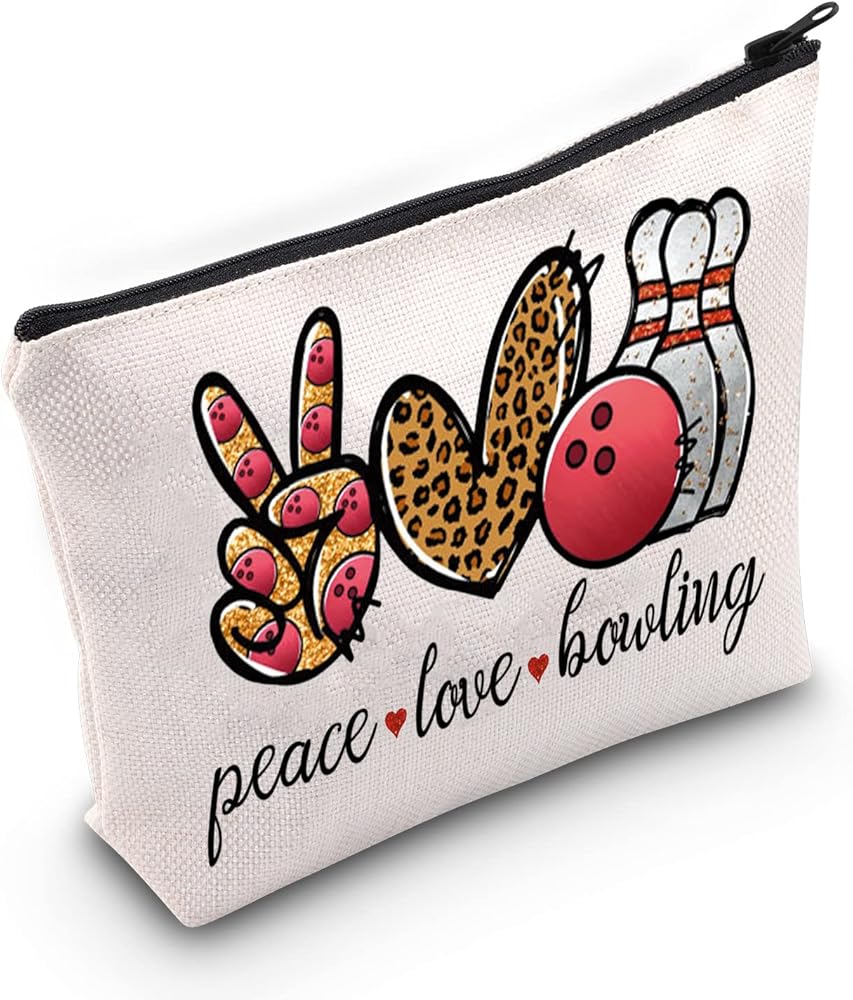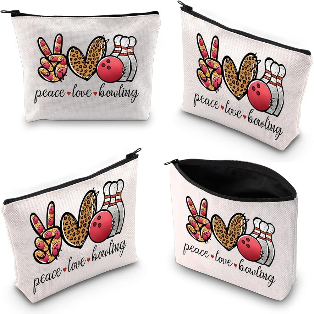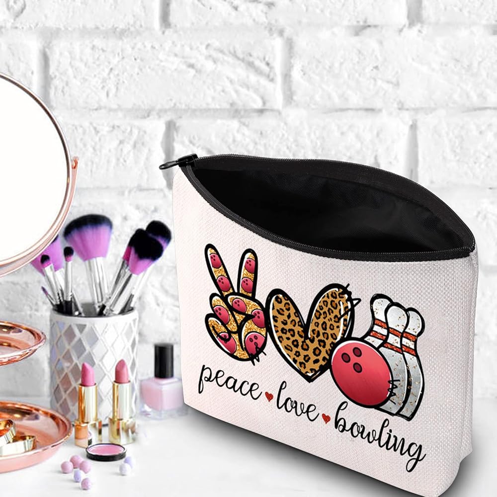 WZMPA Bowling Cosmetic Makeup Bag Bowling Lover Gifts Peace Love Bowling Ball Zipper Pouch For Women Girls (Peace Love Bowling)
