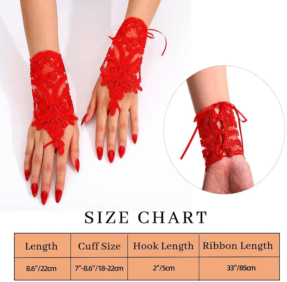 Lace gloves approx size:11.8in(30cm),simple gloves approx size:8.7in(22cm),lace-up design,can be manually adjusted size,making it easy to put on and take off.