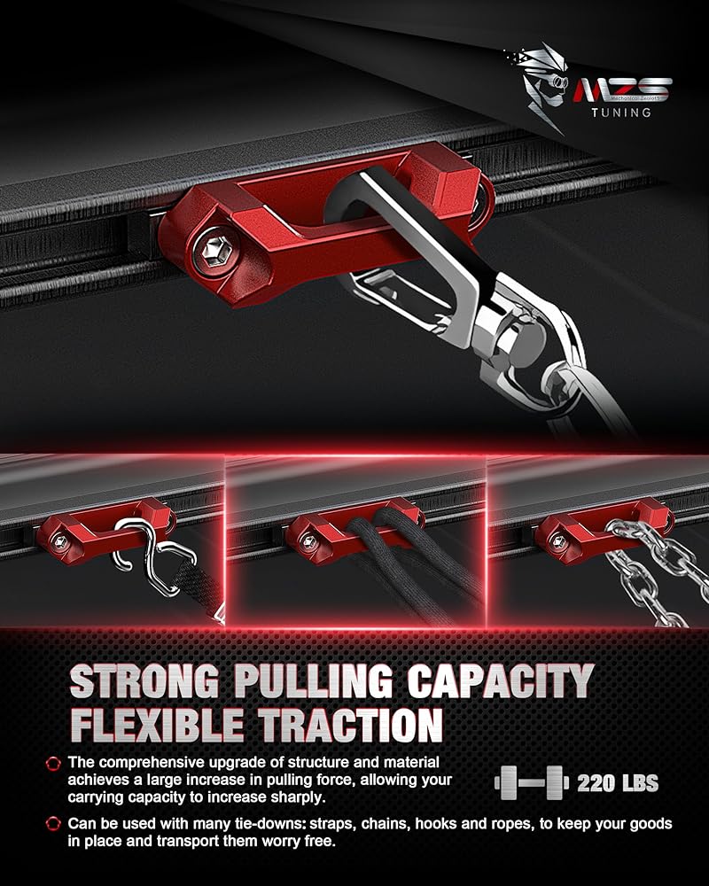 Attractive Design: The new structural tie down provides higher load capacity and safety; Eye-catching colors decorate your truck bed to enhance its aesthetic appeal; 0.78 inch Wide space allows you to anchor any tie-downs: straps, hooks, chains and ropes