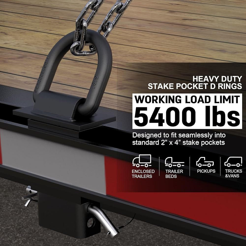 【Wide Application】AUH stake pocket tie down rings fit all 2“x4" standard stake pockets. This d rings for trailers are designed for various trailer and cargo securing needs,flatbed, trailer, trucks,winches etc.