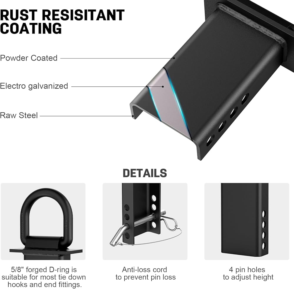 【Durable Material】 These stake pocket d rings are made of solid steel construction and coated with black powder, with high strength excellent durability. They can be positioned in any stake pocket (side, front, or back).