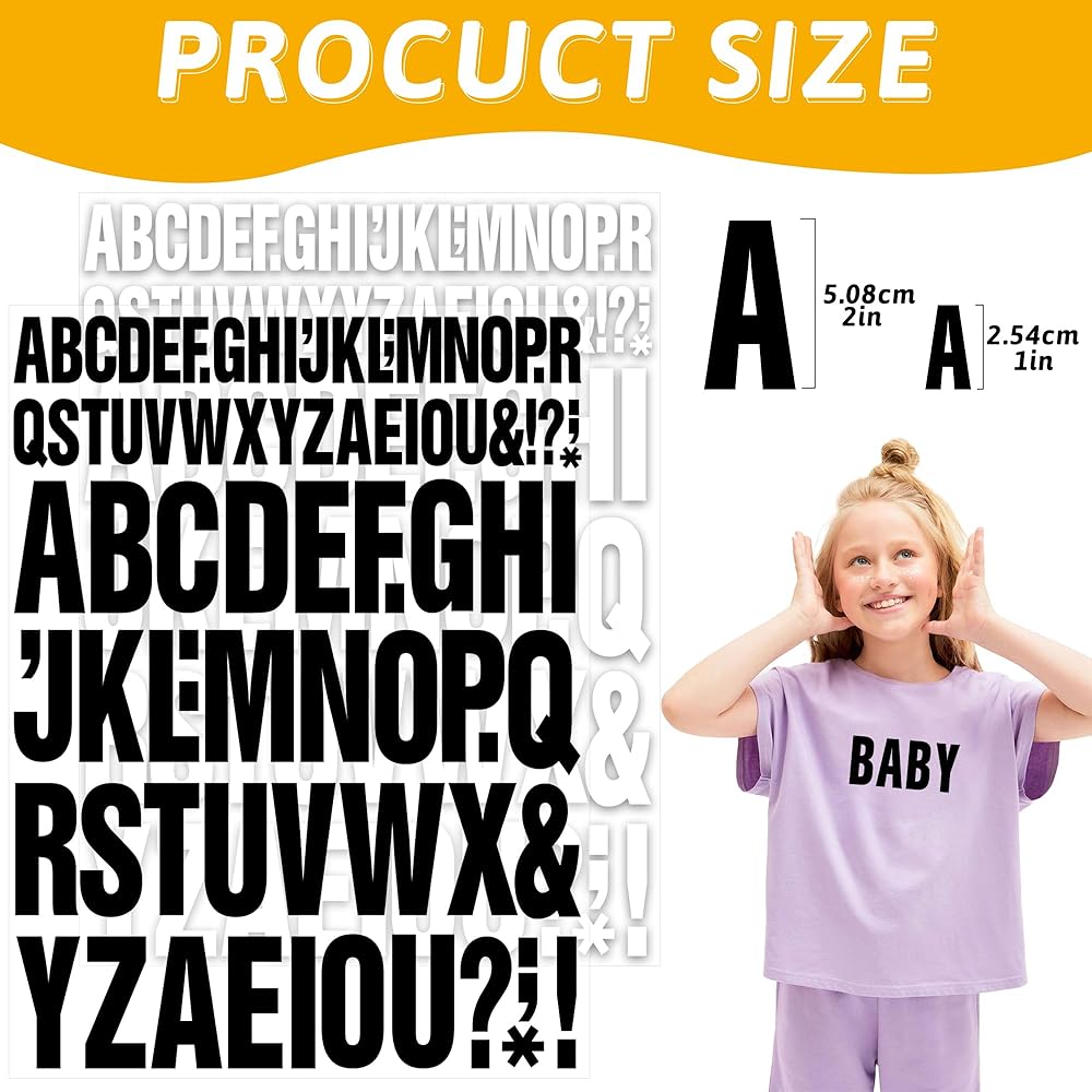 Wide Applicable Occassion: Our iron on letters stickers are designed in classic black and white colors, letters come in two sizes: big and small,Suitable for different scenarios.You can freely mix to create meaningful words and sentences according to your wishes.These iron on letters can be ironed on different projects, Such as Tshirts,hats,bags, jeans,jerseys,parent-child wear,couple wear,dress,etc, sentences to show your creativity