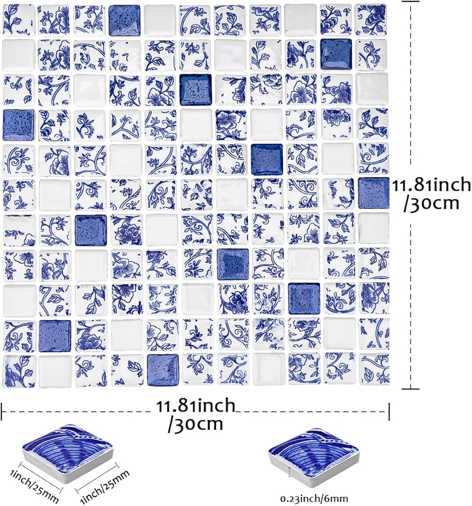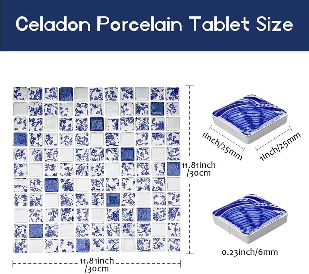 【Colors and Styles】We have nine matching styles of porcelain tiles, square, raindrop shape, blue white gold black color etc. Enough to meet your various decorative needs at home.