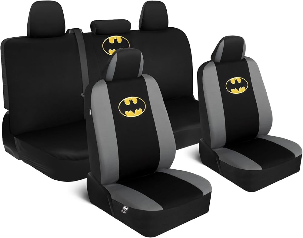 Introducing the BDK Warner Bros DC Comics Batman 9pc Seat Covers Full Set, a premium collection designed to offer both style and protection for your vehicle's interior. This comprehensive seat cover set is meticulously crafted to provide a universal fit for cars, trucks, vans, and SUVs, ensuring maximum compatibility and ease of installation. The BDK seat covers are not just any ordinary car accessories; they are a tribute to the iconic Batman, bringing a touch of superhero flair to your daily drive. The set includes front seat covers, a back seat cover, and headrest covers, all adorned with the legendary Batman logo. Each piece in this full set is designed to be side airbag compatible, prioritizing your safety without compromising on style or functionality. Made from high-quality materials, these seat covers serve as a robust car seat protector, ensuring that your original upholstery remains pristine. Whether you are looking for seat covers for trucks, seat covers for SUVs, or seat covers for cars, this set offers a versatile solution that meets all your automotive needs. The front seat covers are designed to fit most standard car seats, while the back seat cover provides extensive protection for rear seats. Installation is straightforward, thanks to the universal fit design and the included instructions. Within minutes, you can transform your vehicle's interior, enhancing its aesthetic appeal and safeguarding it from everyday wear and tear. The Batman car seat covers front seats are particularly easy to install, allowing you to hit the road in no time with a refreshed and personalized interior. The BDK seat covers are more than just a car seat cover; they are an investment in maintaining the long-term value of your vehicle. As automotive seat covers, they offer a blend of durability, style, and functionality that is hard to match. The carseat cover is easy to clean, ensuring that maintenance is hassle-free, even for the most active lifestyles.