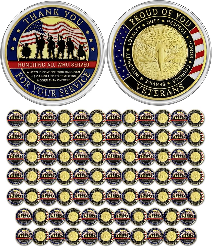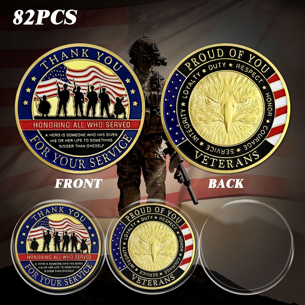 CHURYUML 82Pcs Military Challenge Coins Veterans Appreciation Coin Thank You for Your Service Veterans Day Gifts Christmas Thanksgiving Military Commemorative Gift for Men Women Army Navy
