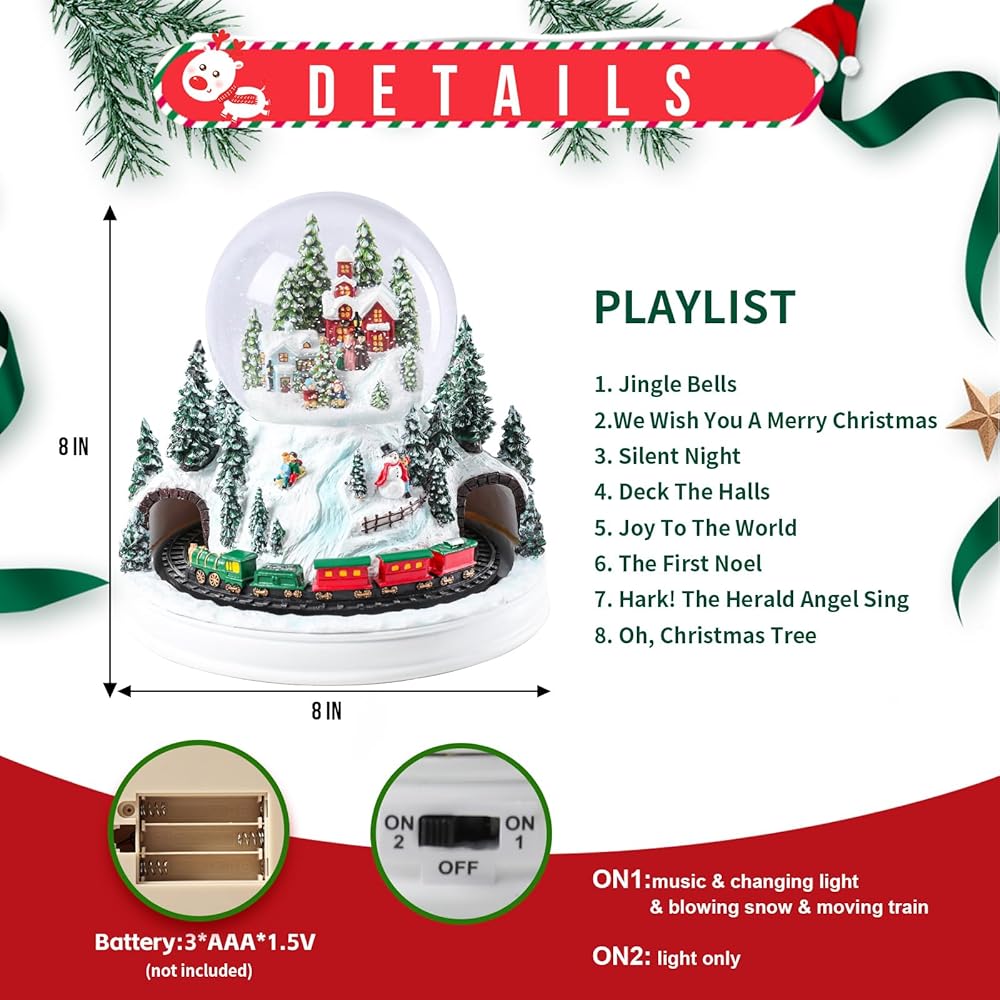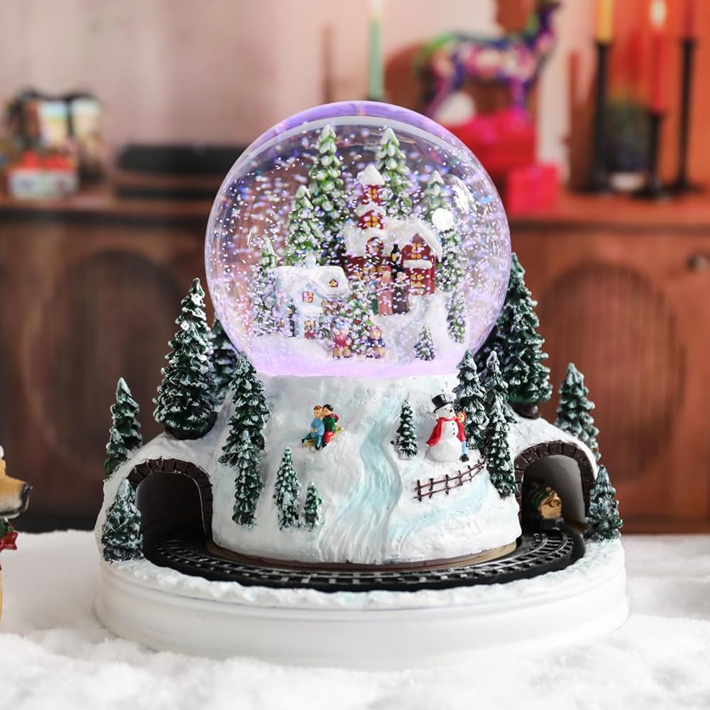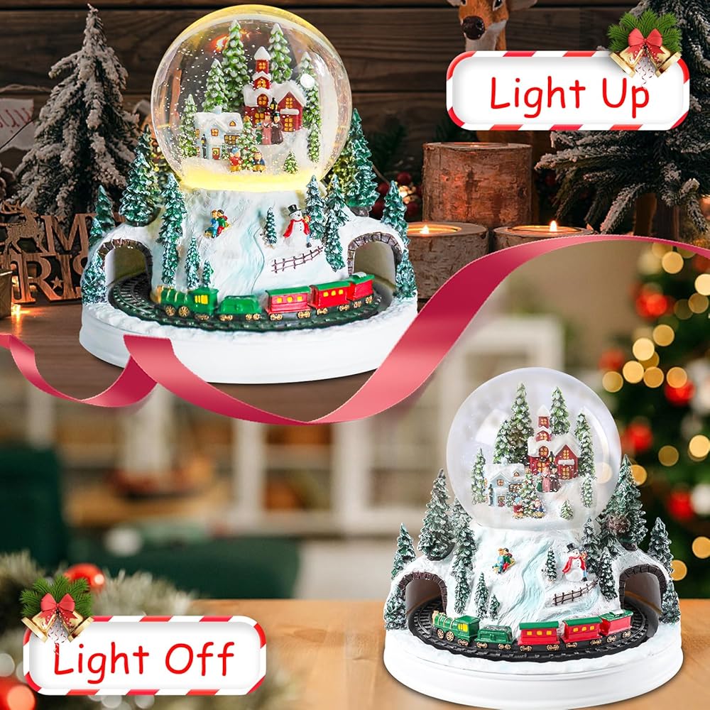 MUMTOP Christmas Snow Globe, Christmas Village Houses with Rotating Train, Snow Scene Lighted Color Changing Snow Globes with Music for Kids Girls Women Adults Gift