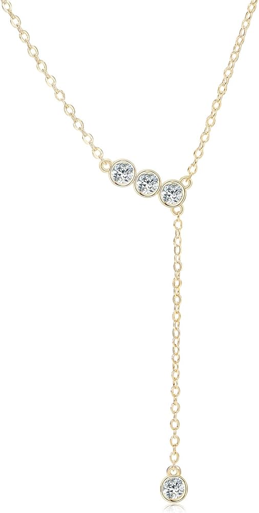 Moissanite Y Lariat Necklace for Women, 925 Sterling Silver 18K White/Yellow Gold Plated Lab Created Imitation-diamonds Pendant Anniversary Day Valentines Christmas Birthday Gifts for Her, Wife, Mom