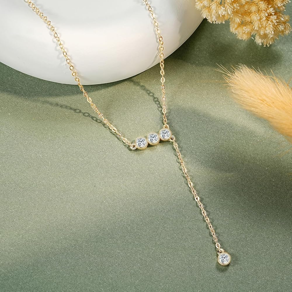 【Trendy Y Shape Necklace】- The stunning necklace feature 4pcs 3mm dazzling round certified moissanite, showcasing exceptional brilliance and sparkling from all angle. The Y-shape design necklace is perfect for daily wear and layering. Trendy elegant beauty boosts any casual or elegant formal attire, making you outstanding on the banquet, meeting, dating, prom, party, or travel.