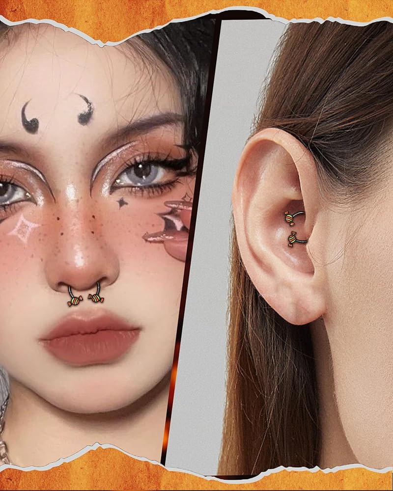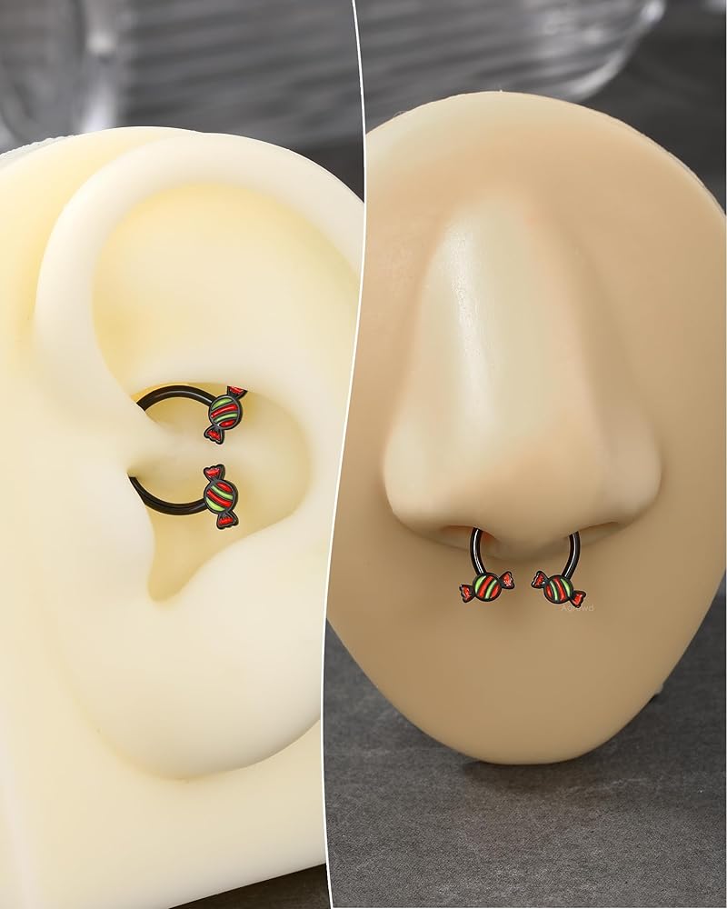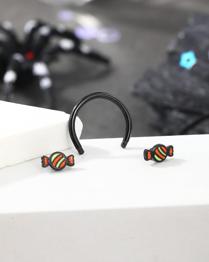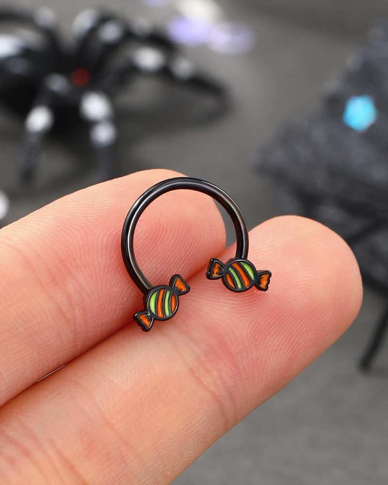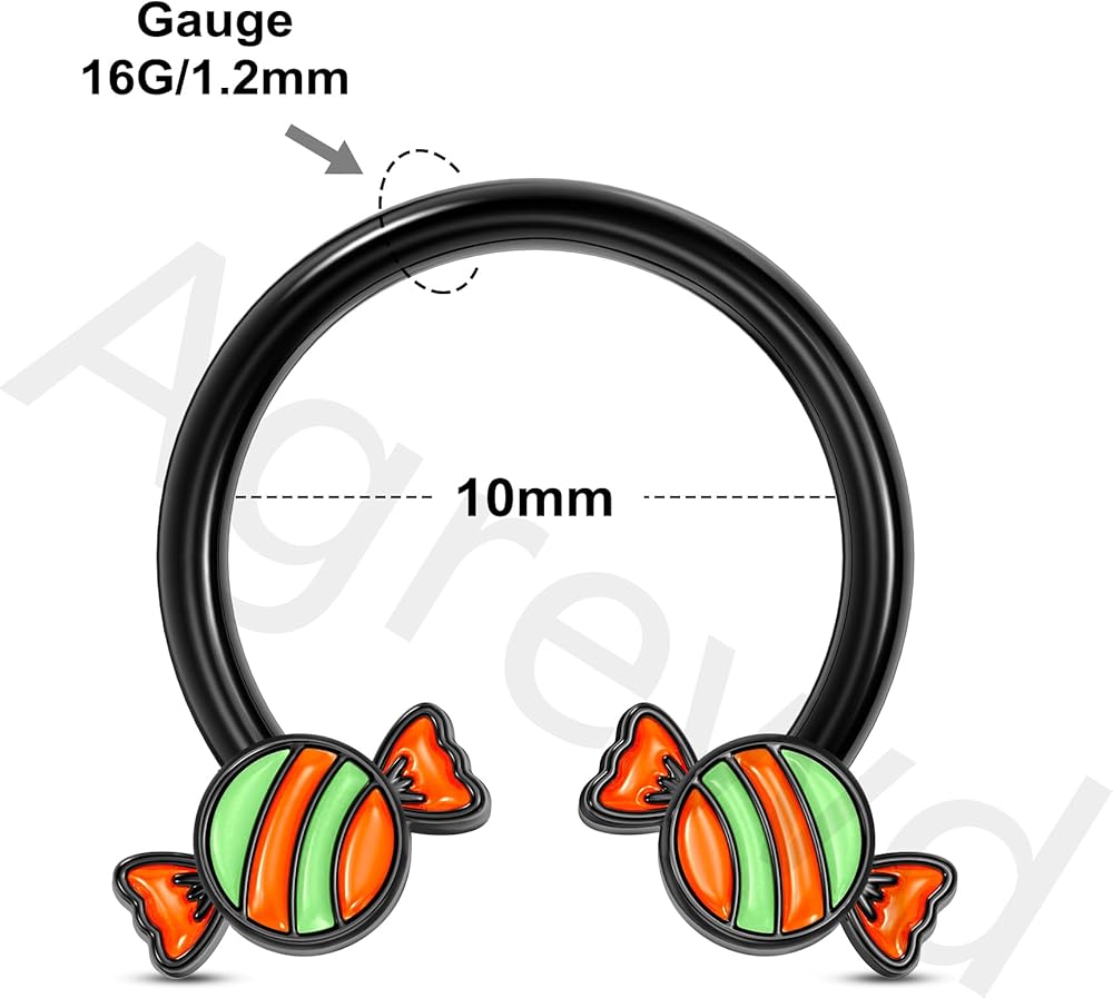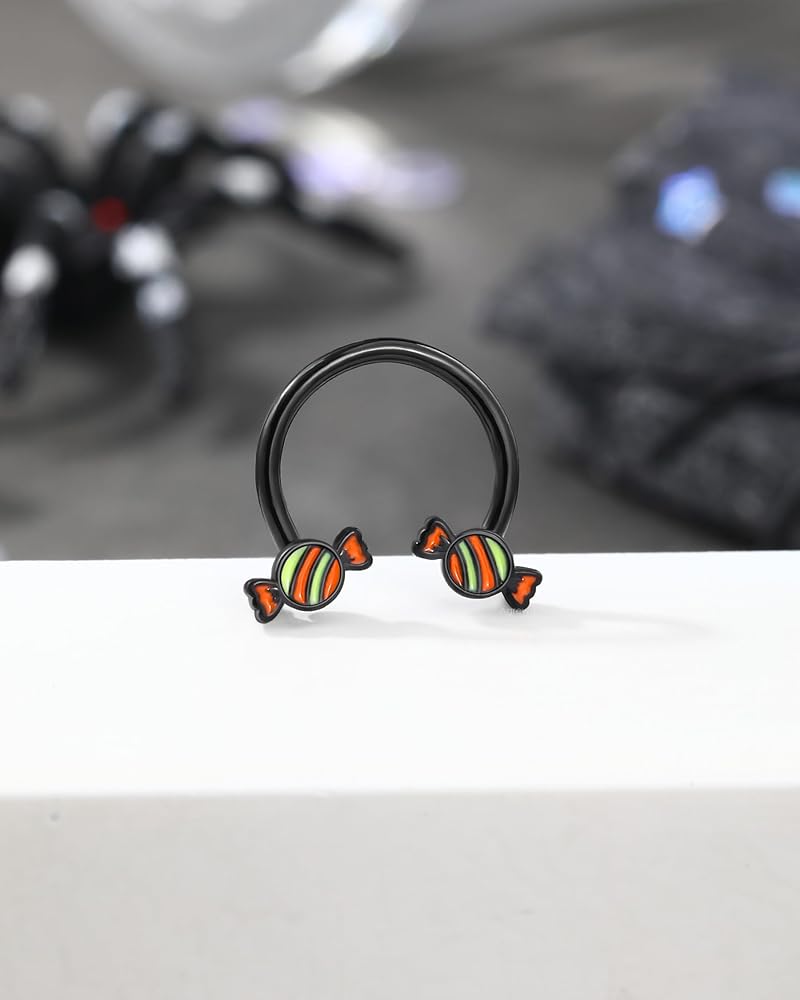 Hallowween Septum Rings 16G Colorful Candy Horseshoe Septum Ring Black Septum Jewelry Dainty Helix Daith Piercing Jewelry Stainless Steel