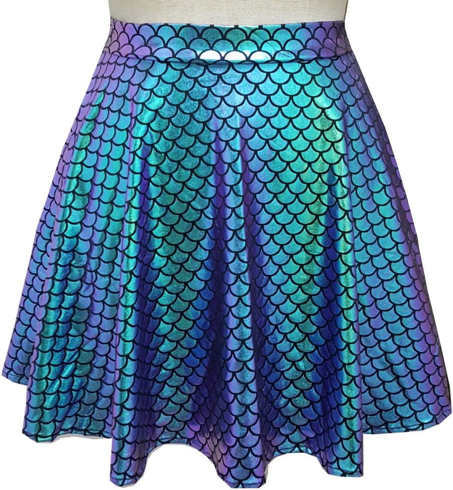 pinda Rave Bottoms Outfits Iridescent Mermaid Party Supplies Holographic High Waisted Flare Skater Skirt