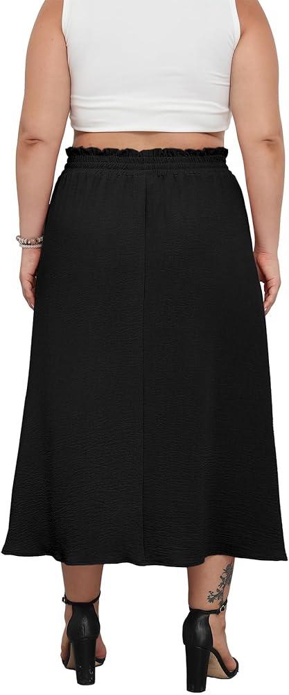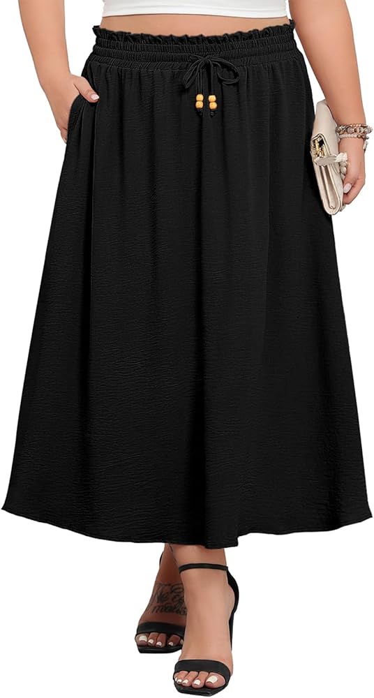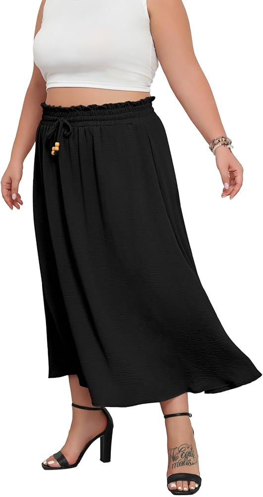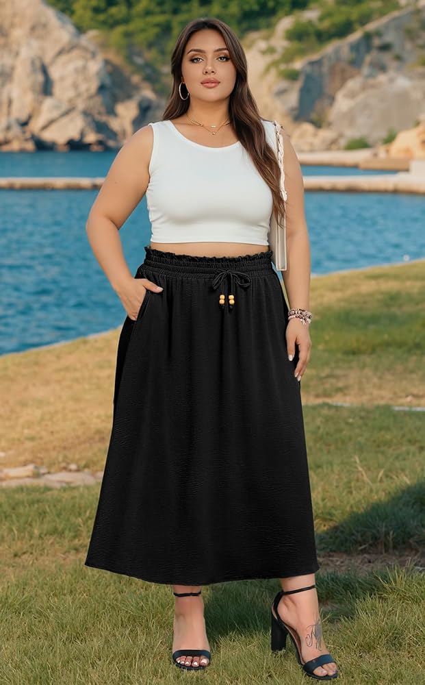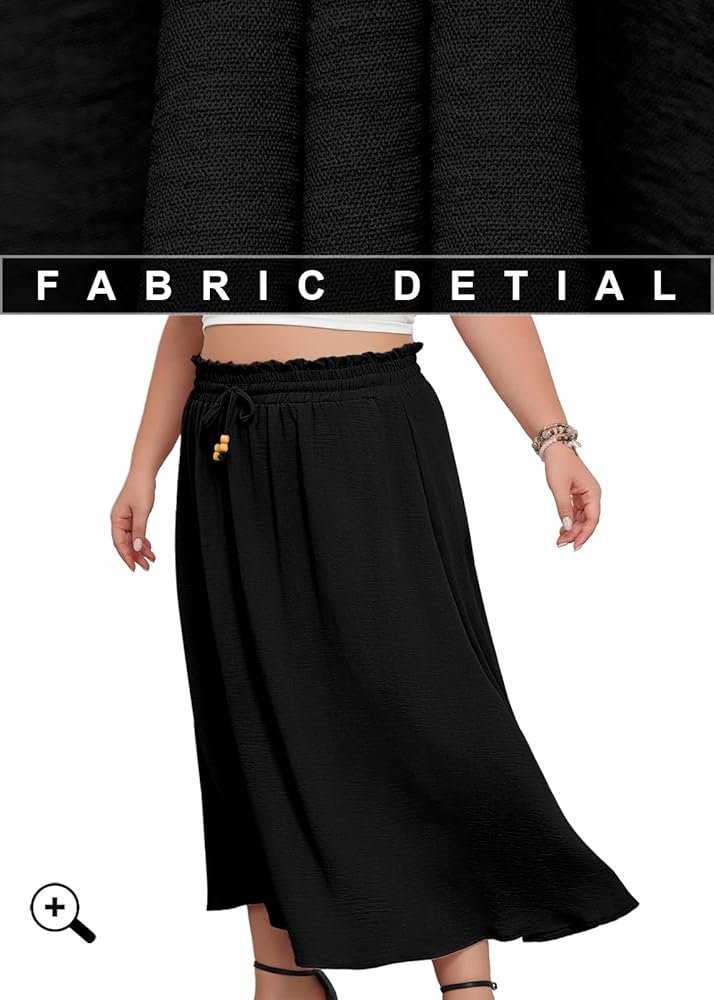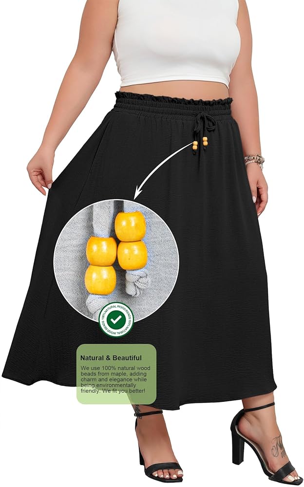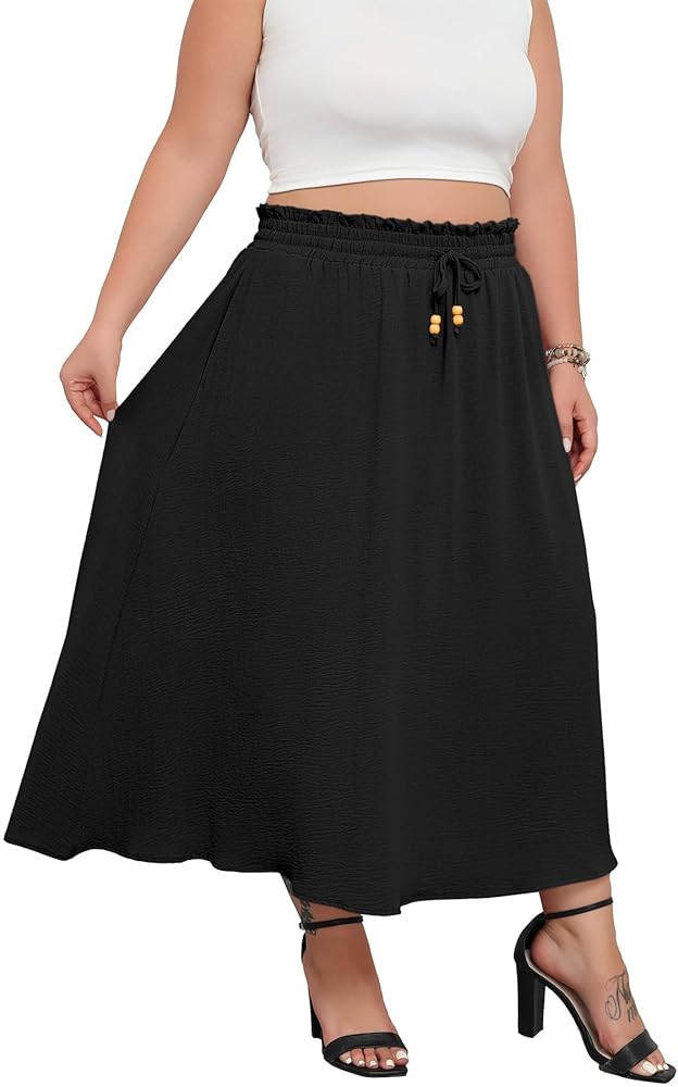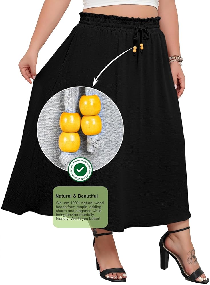 【Trendy Style】: Our PLUS SIZE Maxi skirt is a must-have wardrobe essential, blending chic aesthetics with unparalleled comfort. The A-line silhouette and Maxi length flatter every curve, offering a universally appealing look that enhances all body types. The high-rise design streamlines your silhouette, ensuring a sleek and polished appearance.