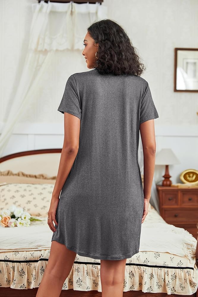 【Elegant Design】The combination of the pleats at the chest and the curved hem of these nightgowns creates the visual effect of elegant and silky waves, helps contour the chest area, and conceals tummy issues. This sleep shirt features two functional side pockets and can carry something around. The nightshirt's v-neckline makes you look elegant and glamorous