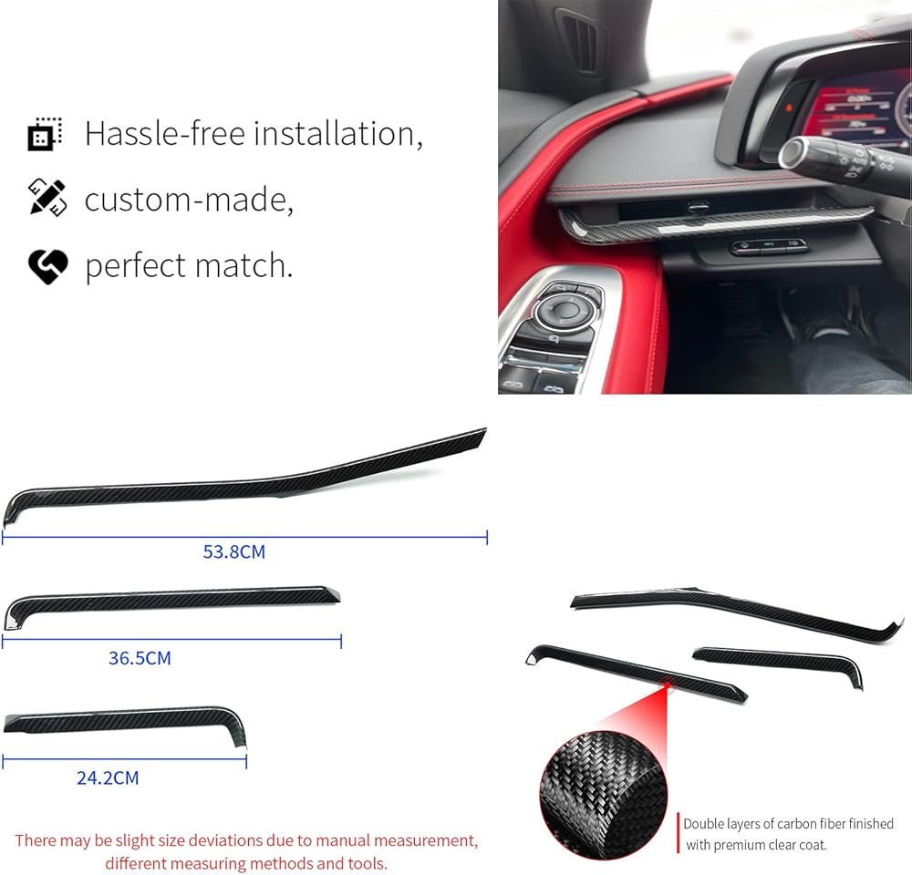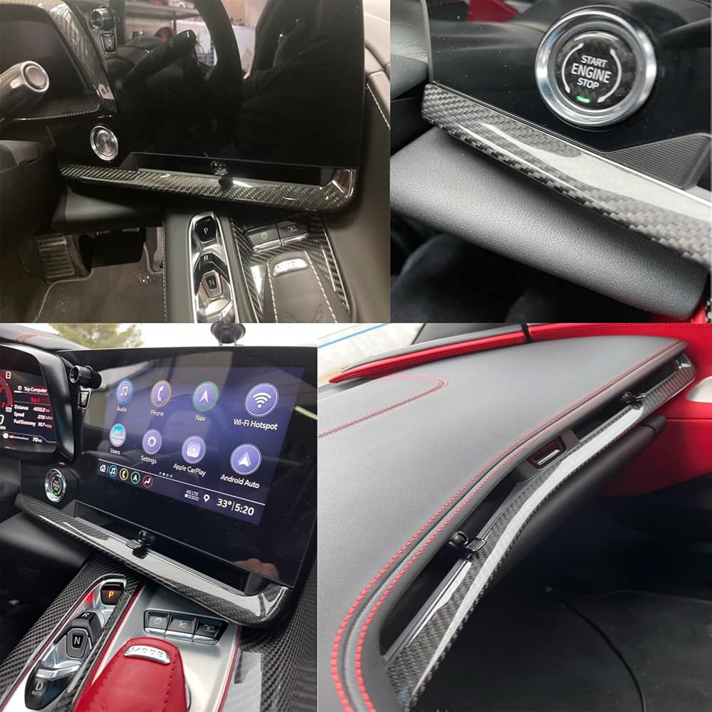 Genuine Carbon Fiber Dashboard Strip Trim for Corvette C8 Z51 Z06 ZR1 Coupe Convertible 2020 2021 2022 2023 2024 2025, Central Console Dash Board Cover (Black Carbon Dashboard Panel Trim)