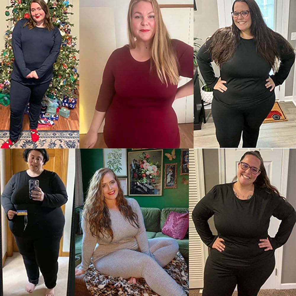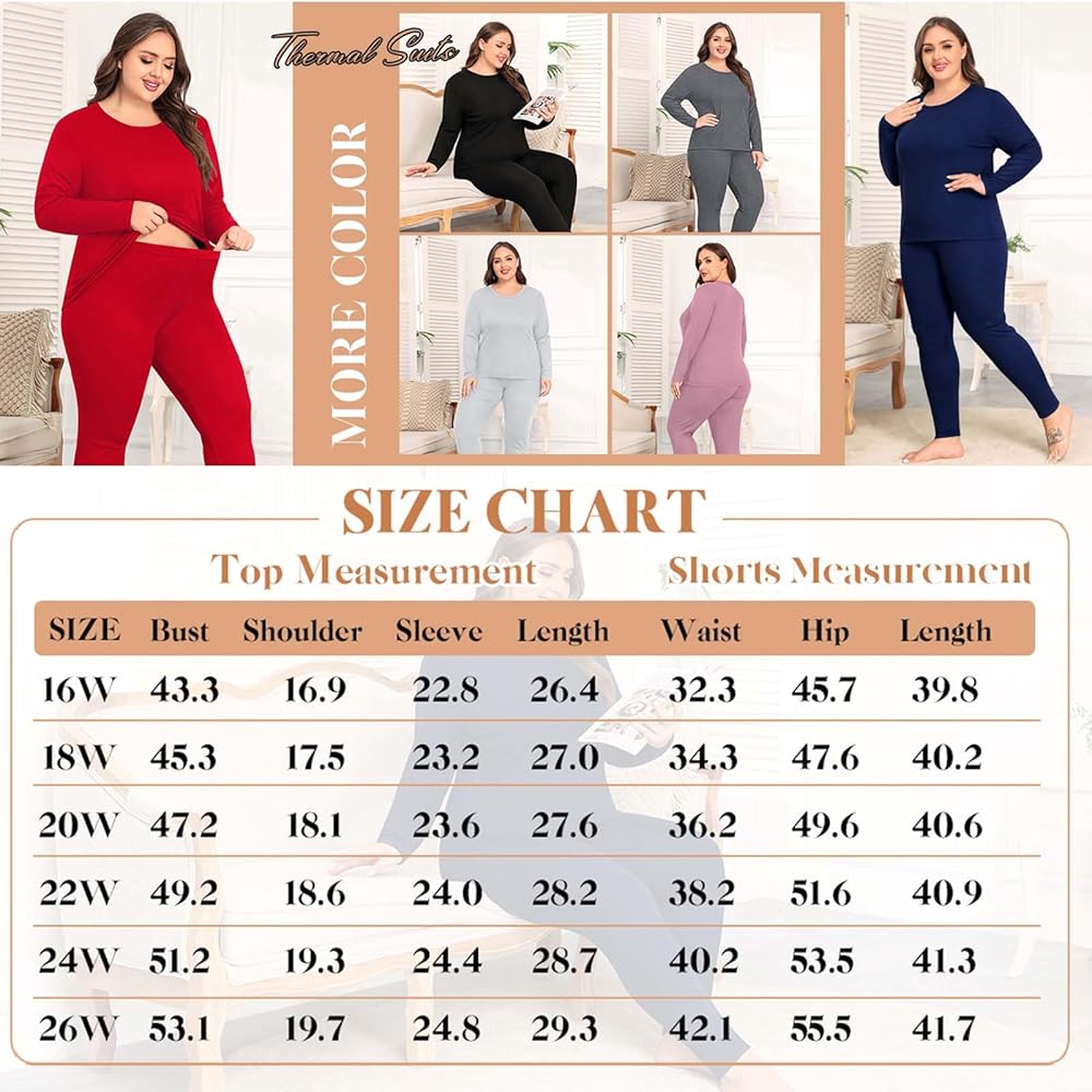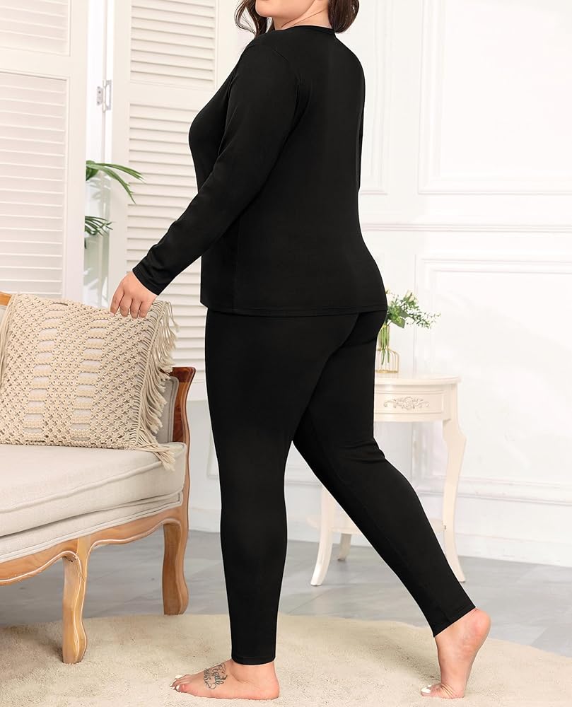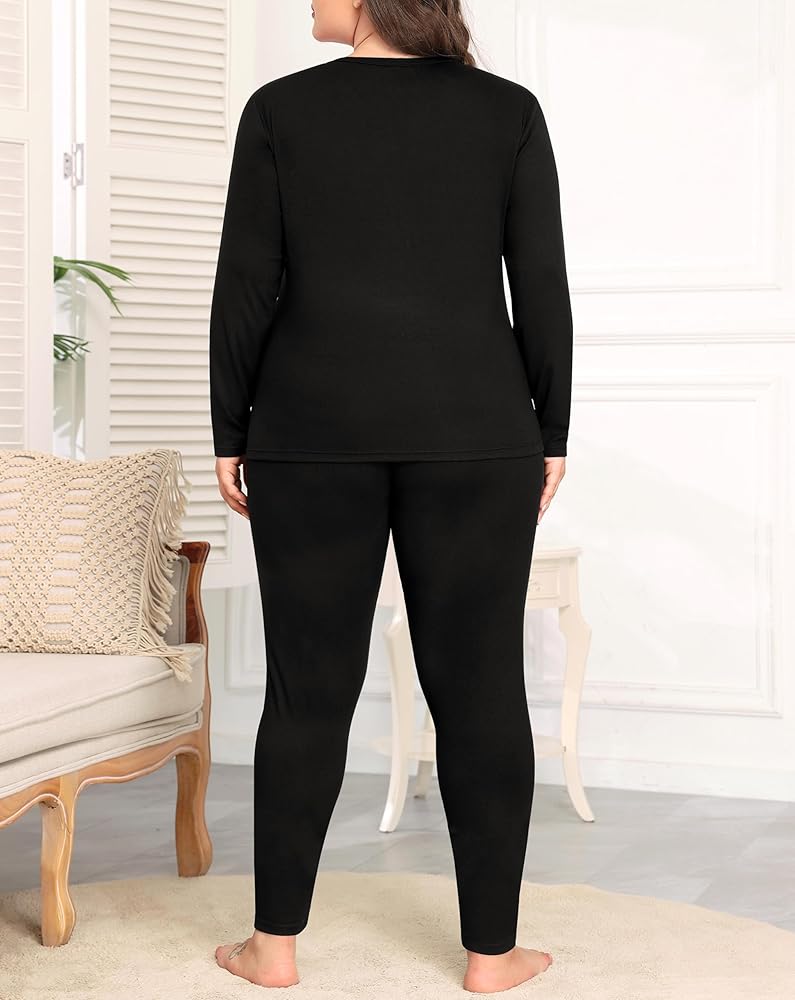 【Womens Thermal Top And Bottom Set】Plus size long underwear set for women consists of a long sleeve top and a pair of full length pants, which are great to be wear as a set and also performs well as a single fleece top or basic pant. These plus size thermal clothes come in wide range sizes, Giving a comfortable loose fit for every plump woman.