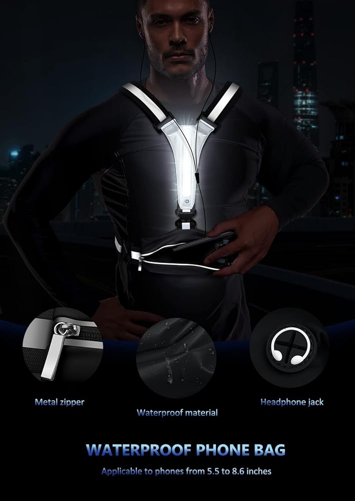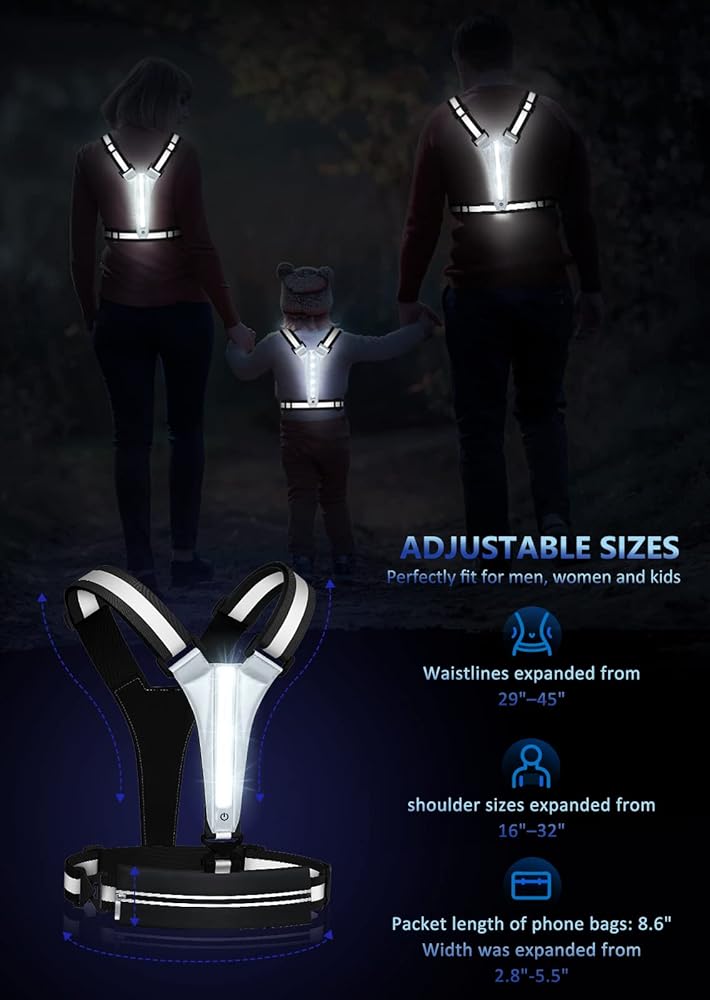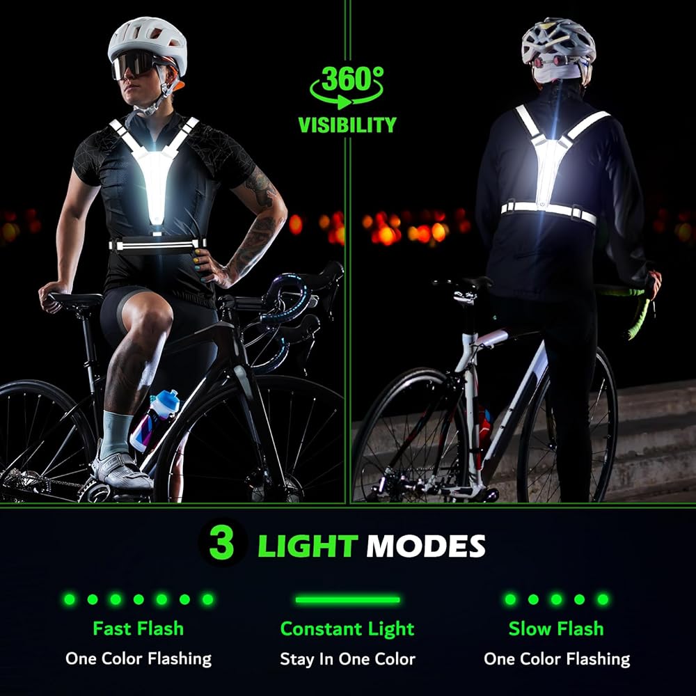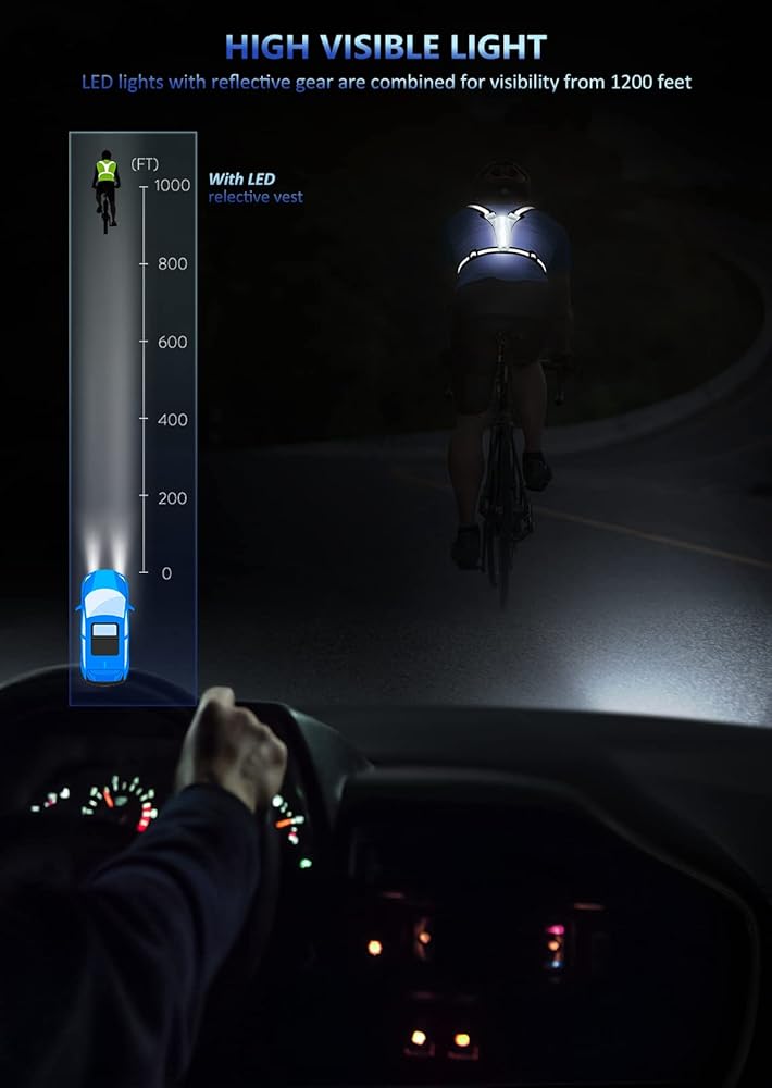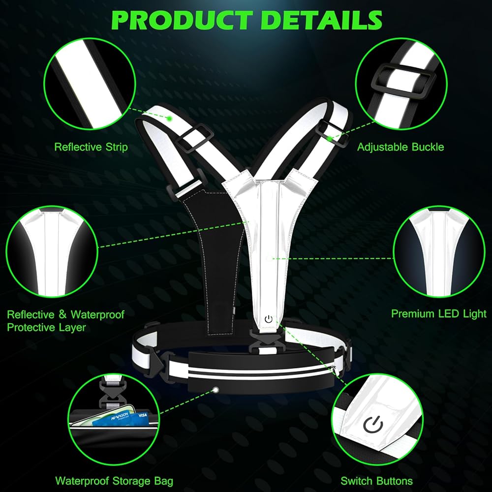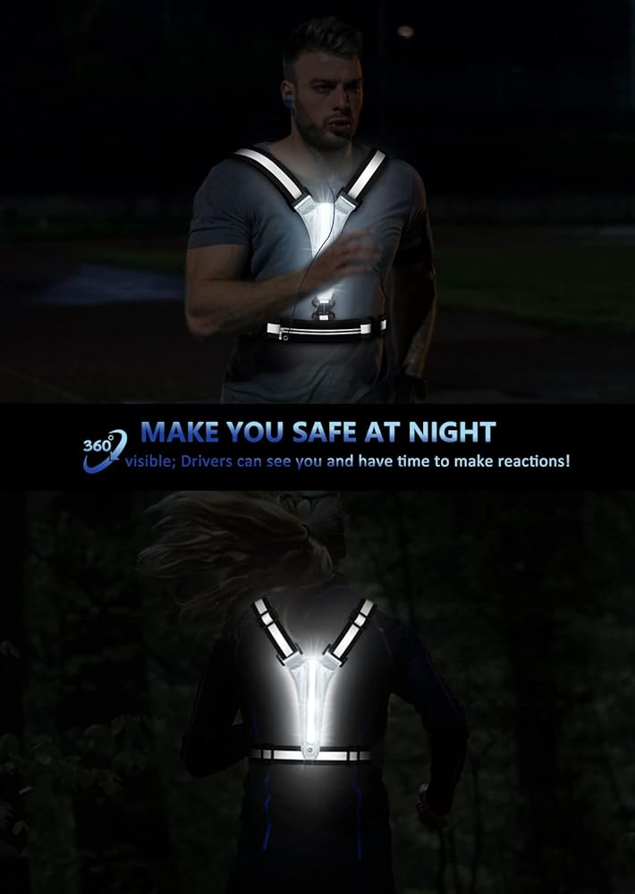 DRIVERS CAN SEE YOU AND HAVE TIME TO MAKE REACTIONS-The new reflective running vest combines LED flash lights and reflective gear. The drivers can see you from 1200 feet away even in the darkness and without any light reflection.